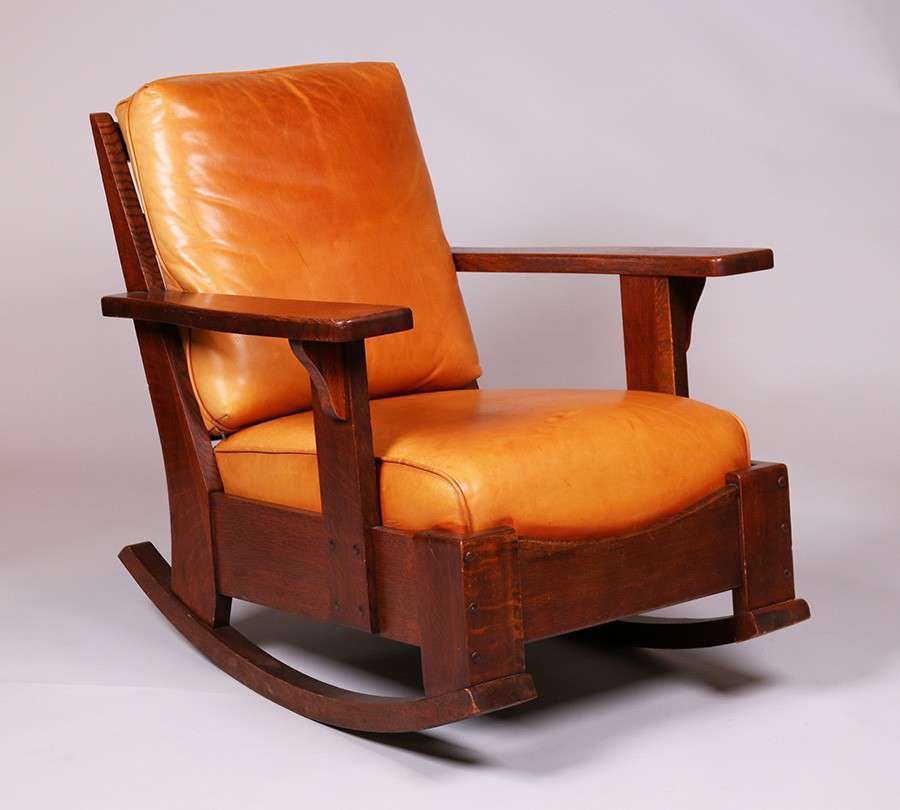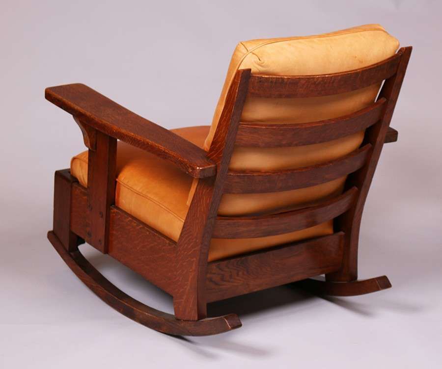 Beautiful Limbert #819 Paddle Arm Rocker. Excellent original finish. Signed. 34"h x 32"w x 36"d SOLD