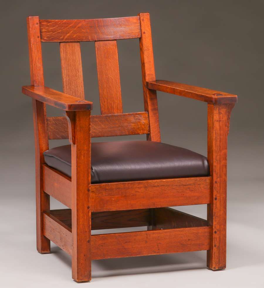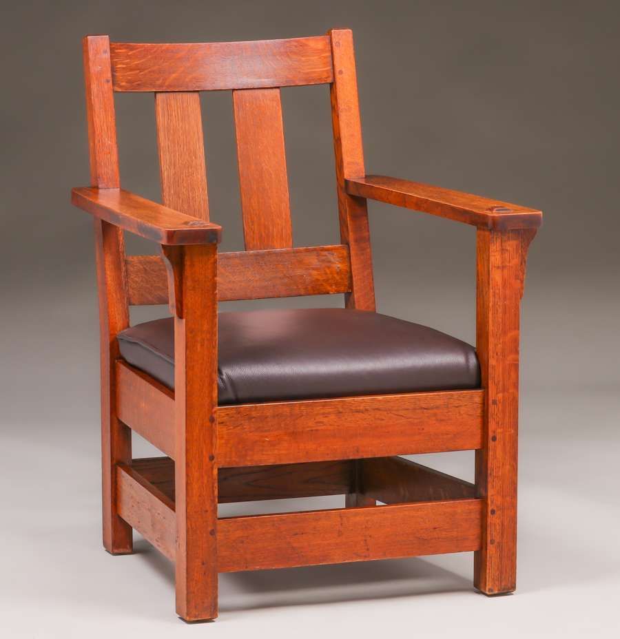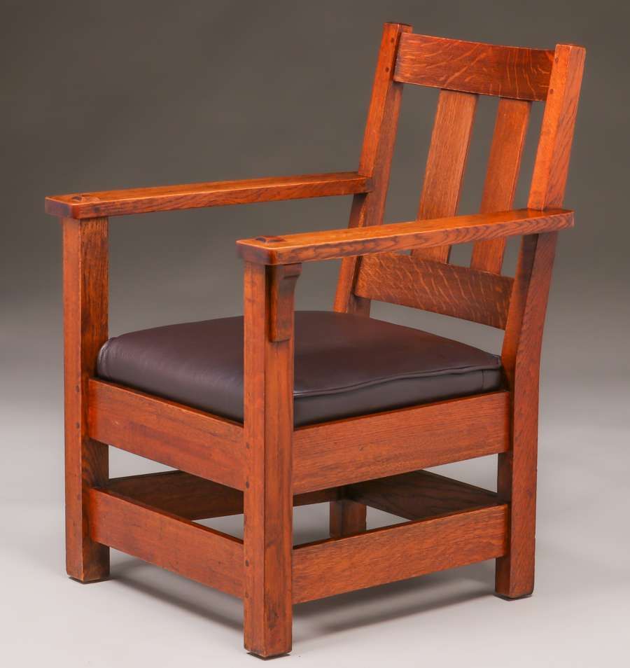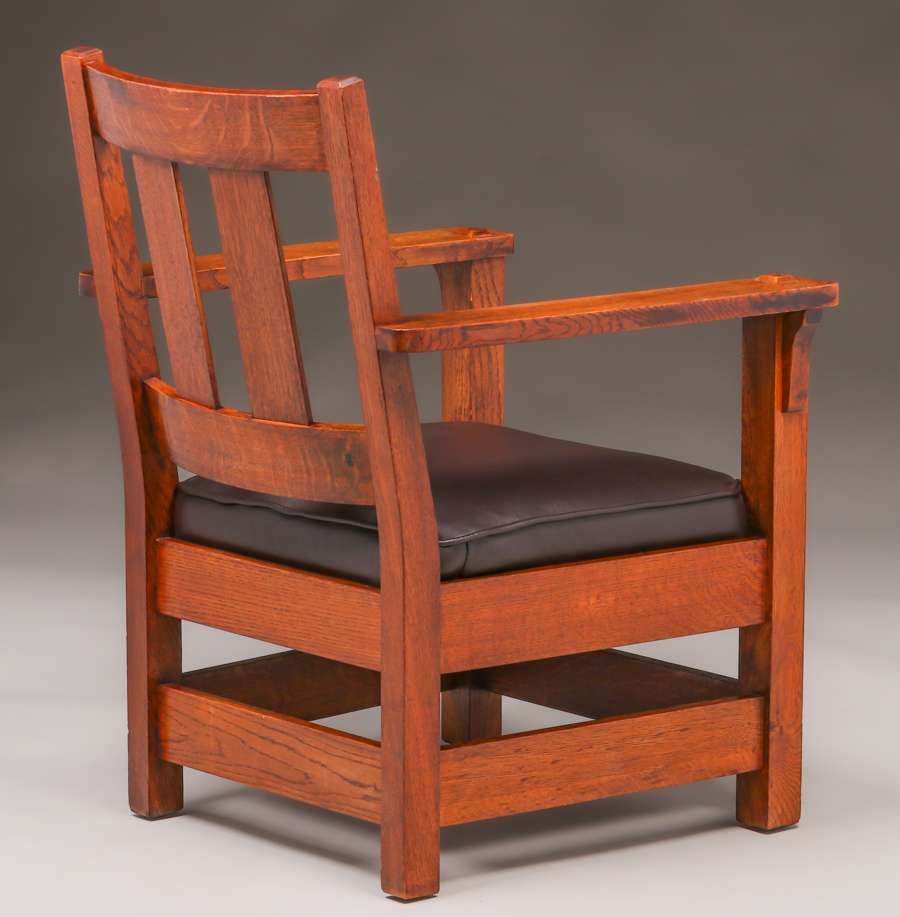 Limbert Armchair c1910. Signed. Excellent original finish. Rock solid sturdy. 36"h x 26.5"w x 27"d SOLD