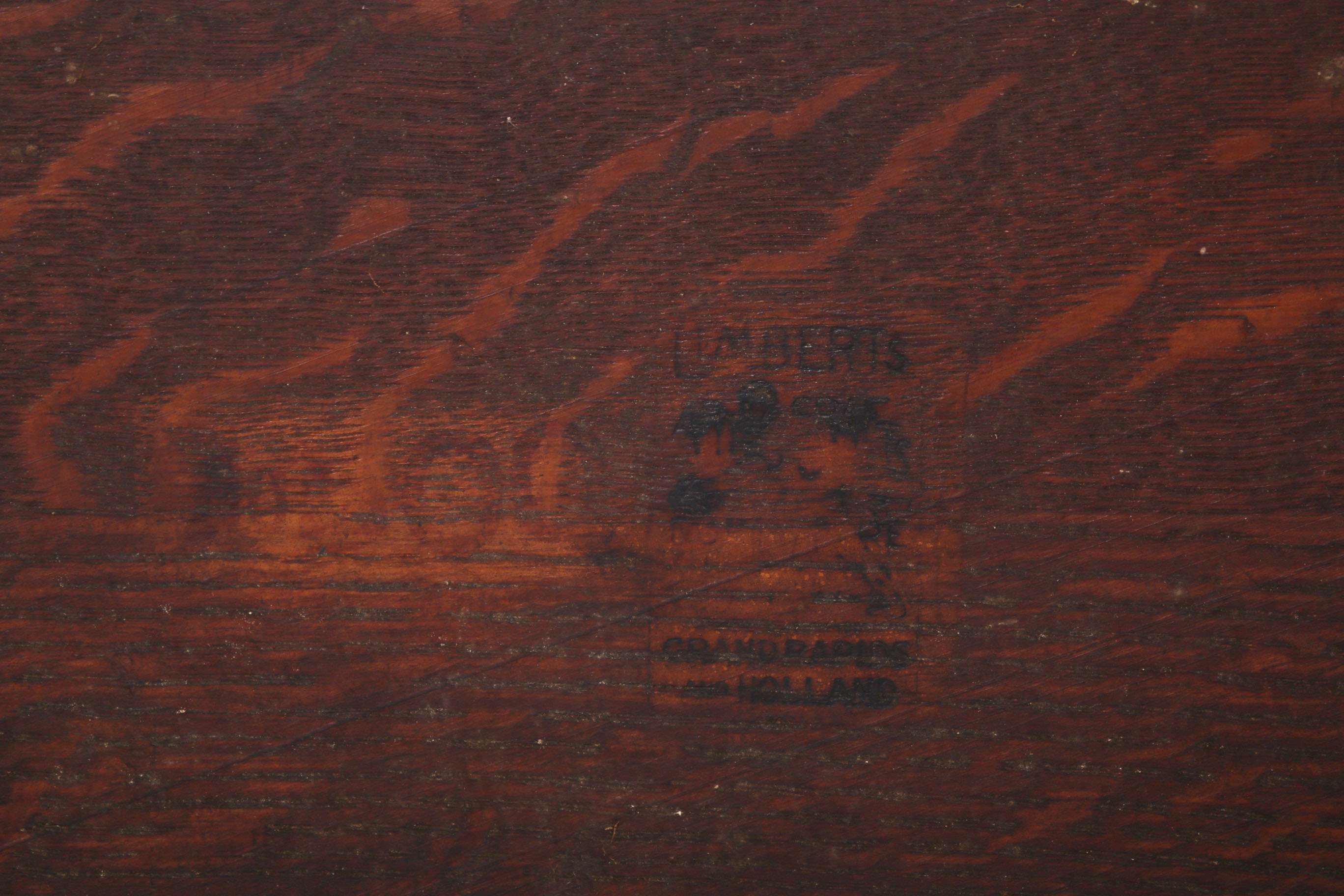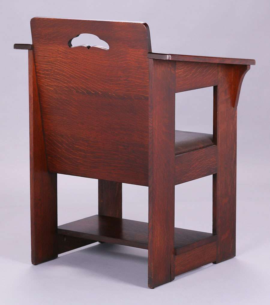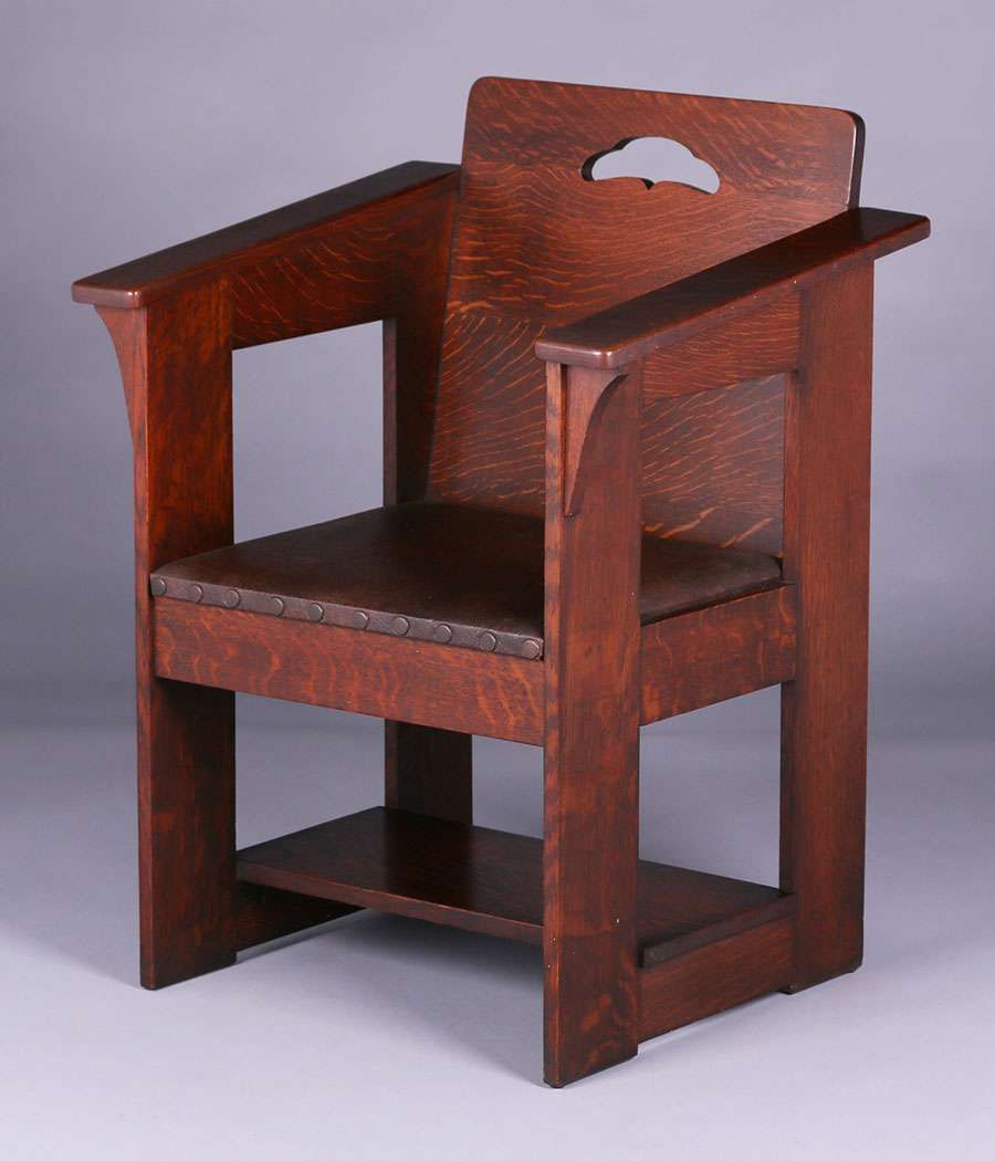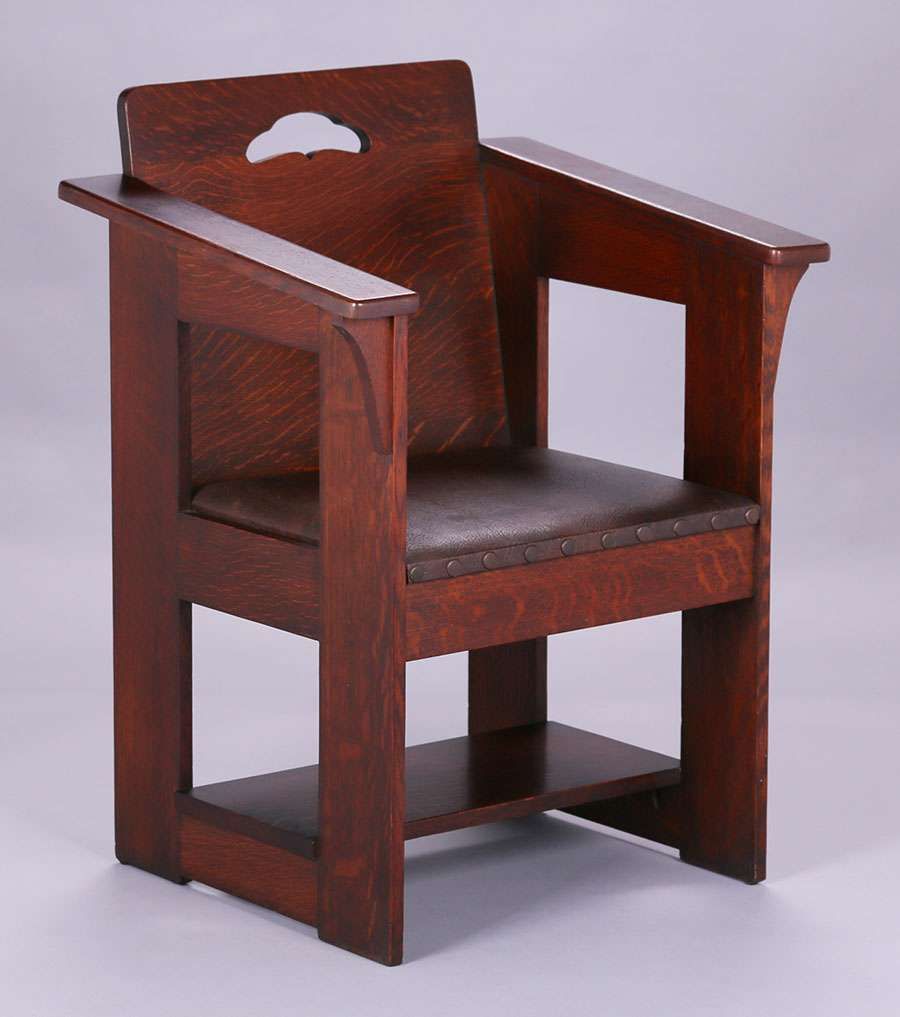 Limbert Cafe Chair. Signed with branded mark. The cleanest original finish and crisp example we have ever seen. 34.75"h x 25.75"w x 21.5"h SOLD