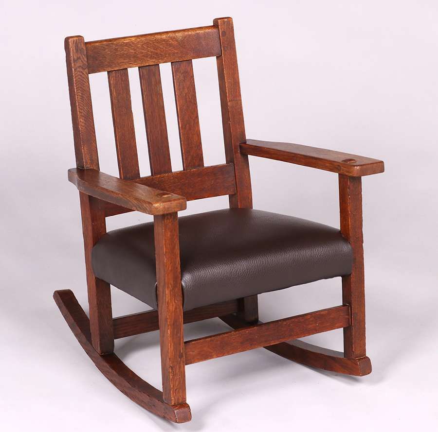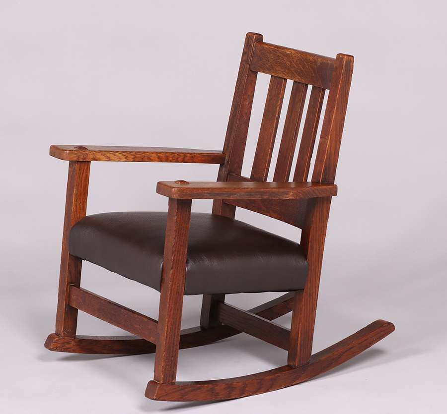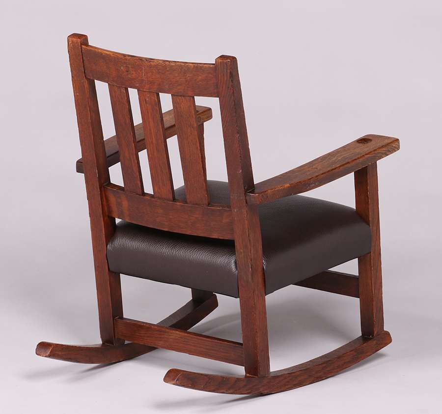 Limbert Child's Rocker c1910. Signed with branded mark. Excellent original finish. Very sturdy. 23.25"h x 18.5"w x 21.25"d SOLD
