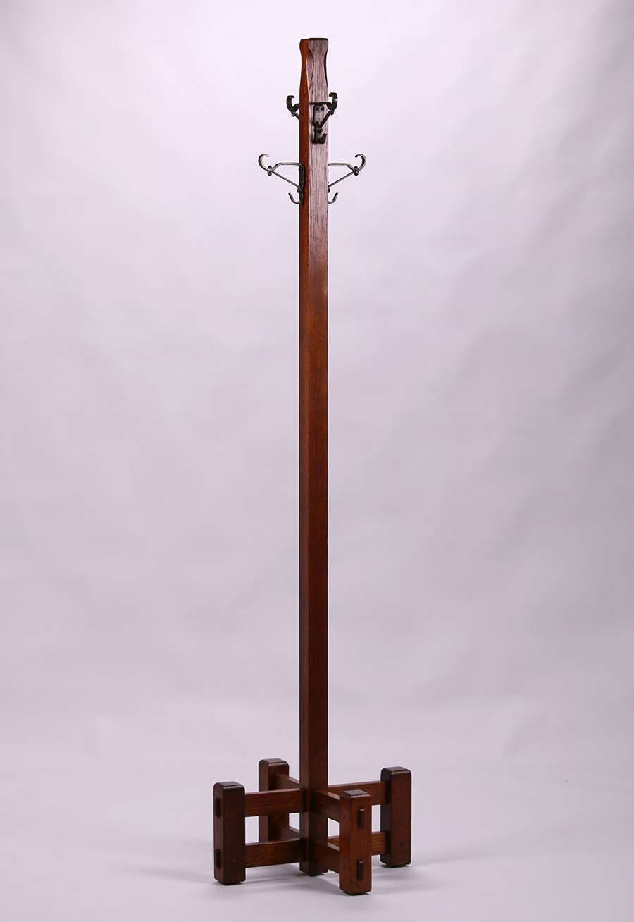 Limbert coatrack. Unsigned. Excellent original finish. 71.5"h x 18" x 18" base SOLD