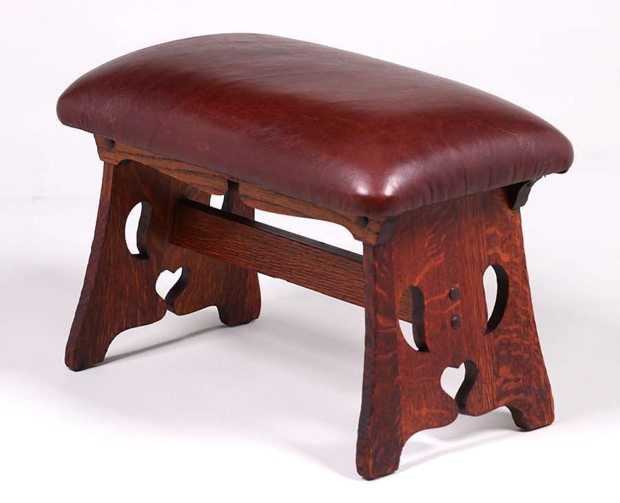 Limbert cricket cutout footstool. Signed. Excellent original finish. 20"w x 12"d x 15"h SOLD
