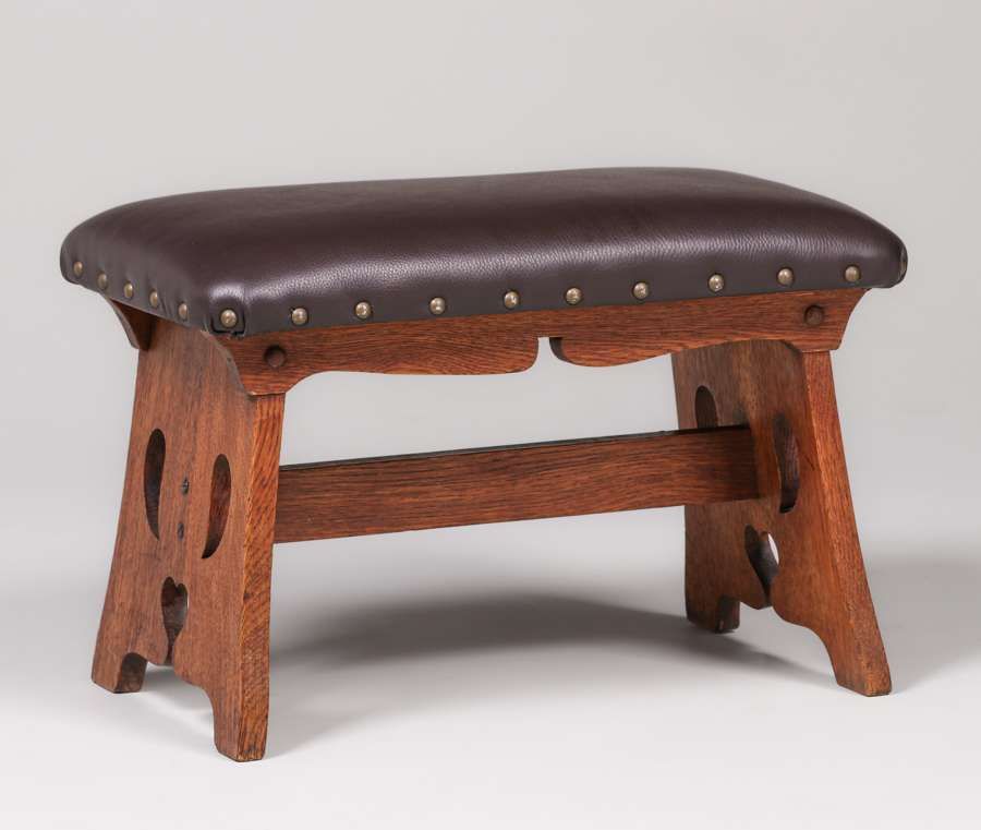 Limbert Cricket Cutout Footstool c1910. Signed. Excellent original finish. 20.5"w x 12.5"d x 14"h SOLD