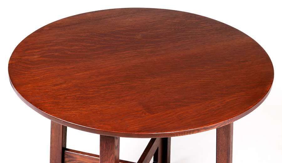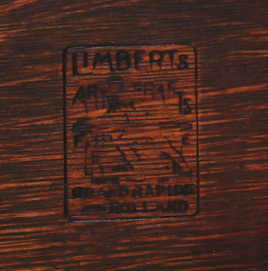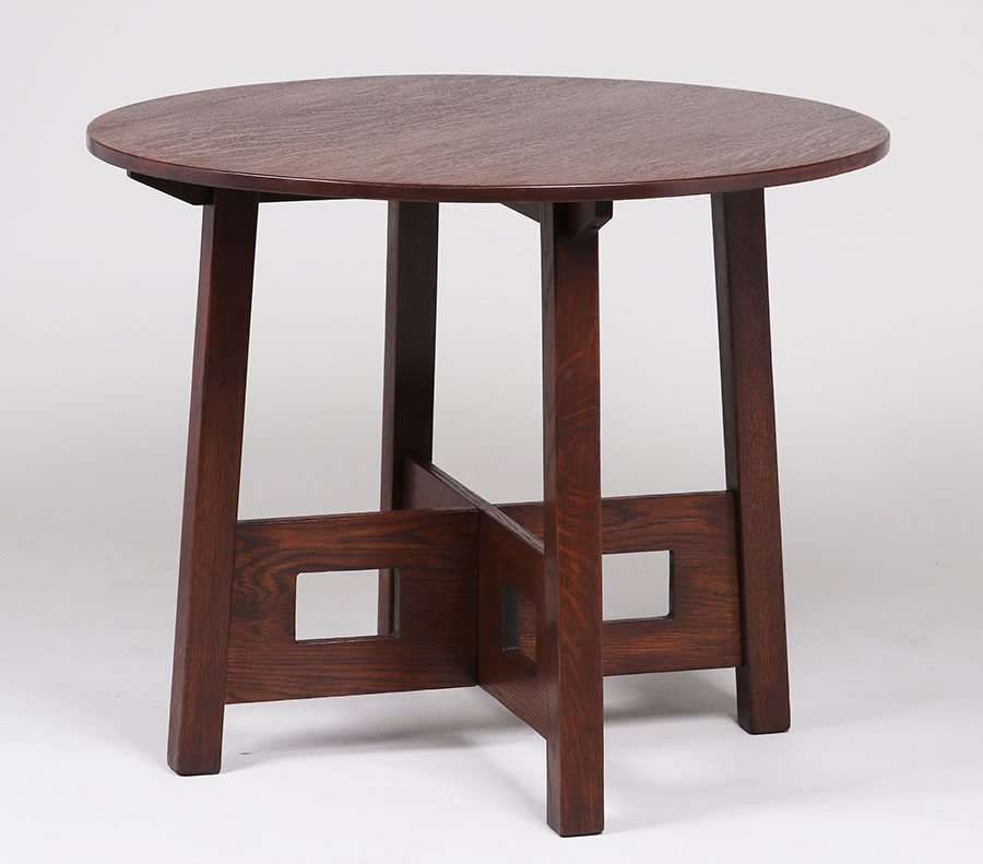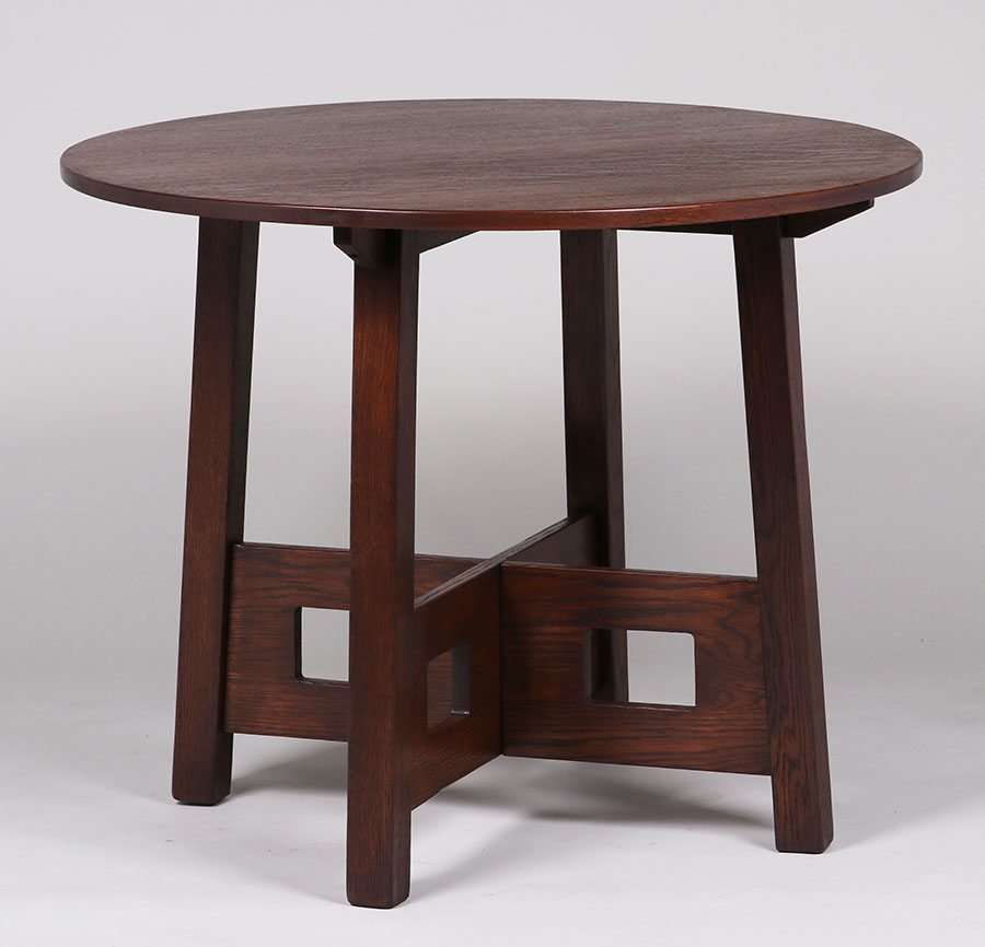 Limbert cutout lamp table. Signed. Very nicely refinished. 36"d x 29"h SOLD