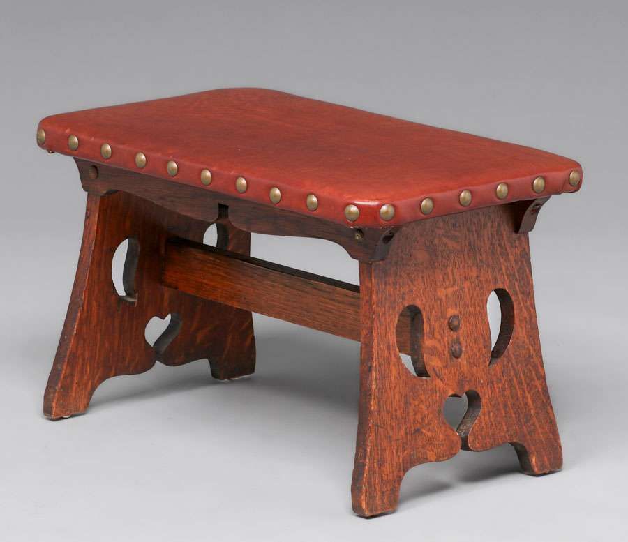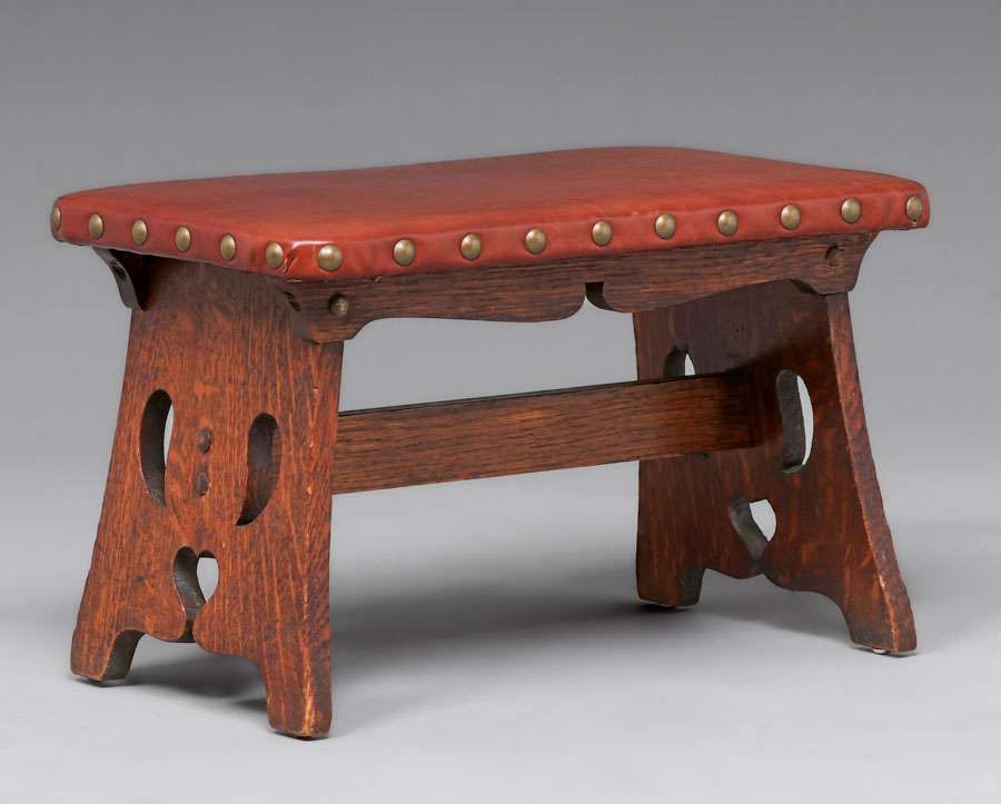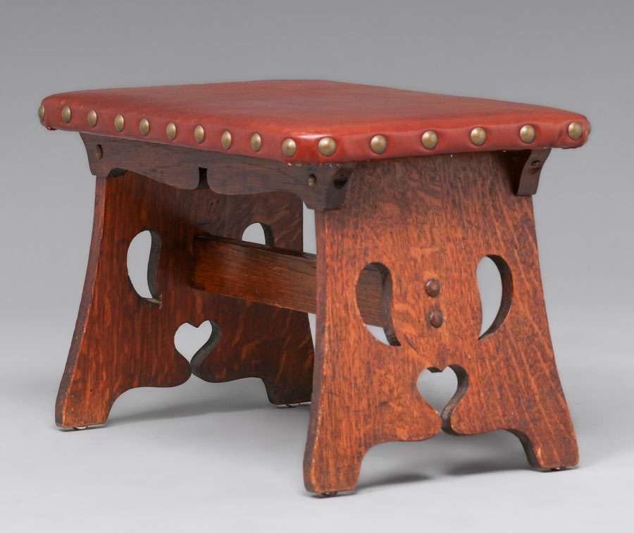 Limbert Cutout Cricket Footstool c1910. Signed with branded mark. Excellent original finish. 20.5"w x 12.5"h x 12.5"d SOLD