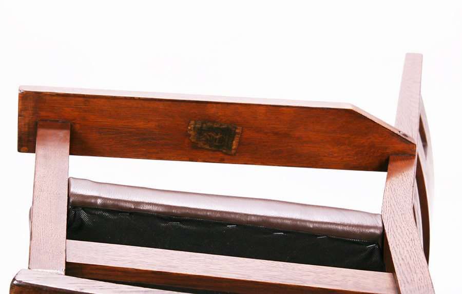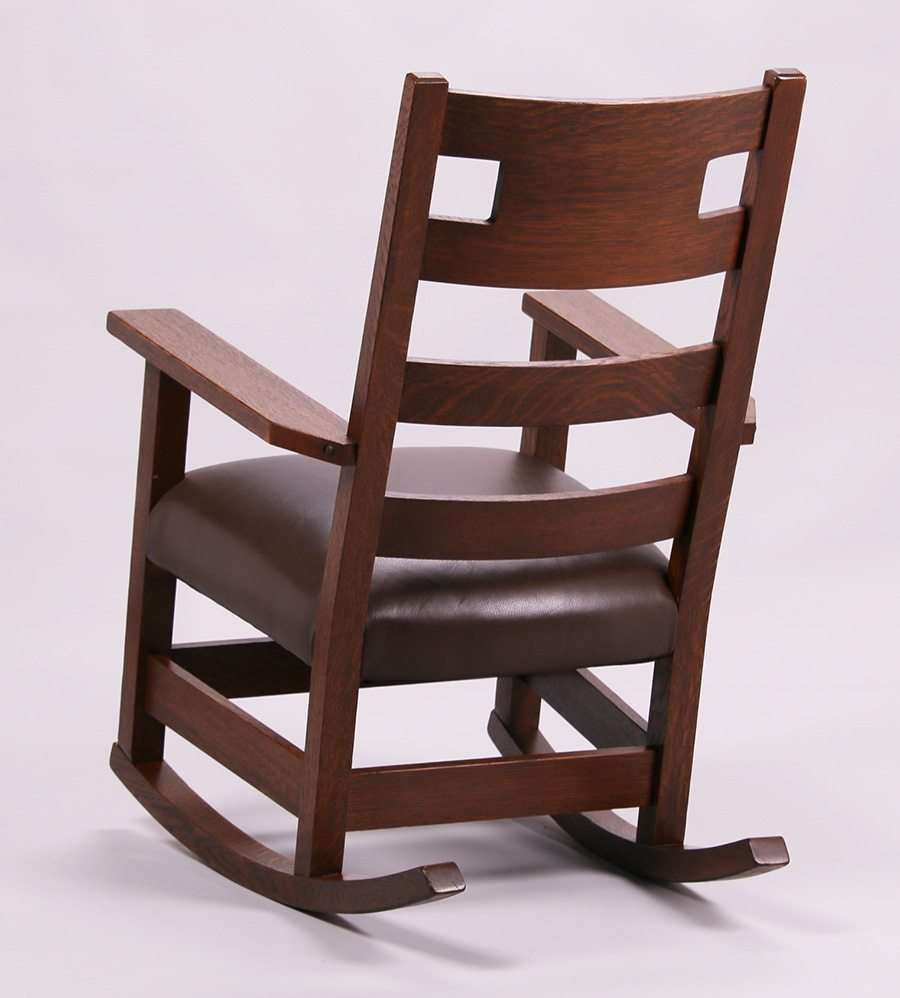Early Limbert cutout rocker c1902-1905. Signed with paper label under arm. Refinished. 38.5"h x 24.5"w x 30.5"d SOLD