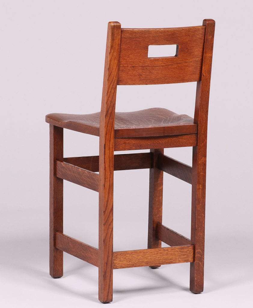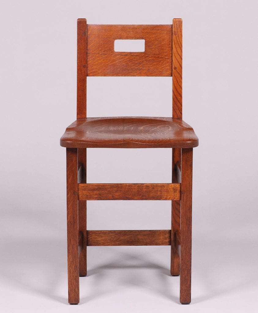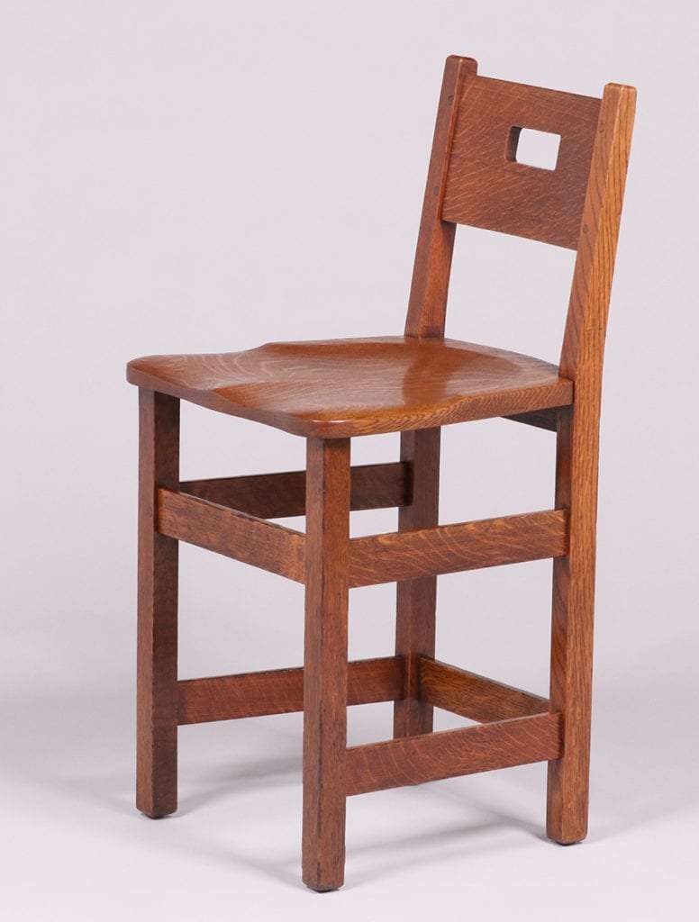 Limbert Cutout Side Chair c1910. Signed with branded mark. Top of seat refinished perfectly to match original finish. Very sturdy. 32.25"h x 16"w x 15.5"d SOLD
