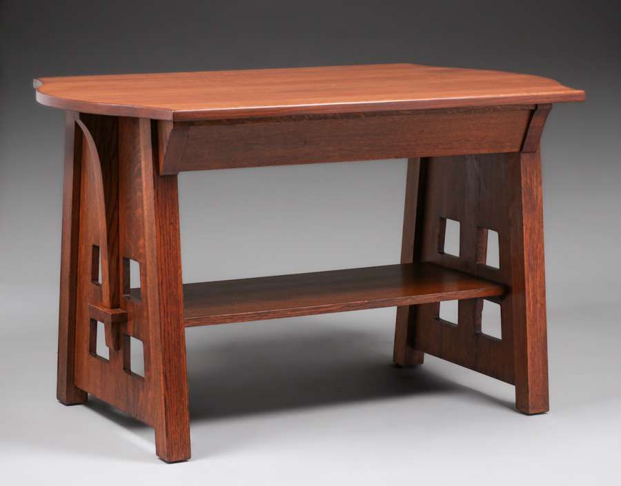 Limbert Cutout Turtle-Top Table c1910. Signed. Top refinished perfectly to match original finish. 48" x 30" x 29"h SOLD