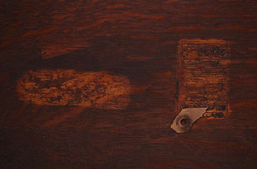 Limbert cutout window seat. Signed with branded mark. Excellent original finish. The cleanest original finish example of this form we have ever seen. 24"h x 24"w x 18"d SOLD