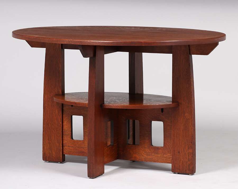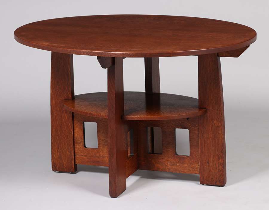 Limbert Double Oval Cutout Table c1910. Signed with branded mark. Very nicely refinished. 47.5"w x 36"d x 29.5"h SOLD