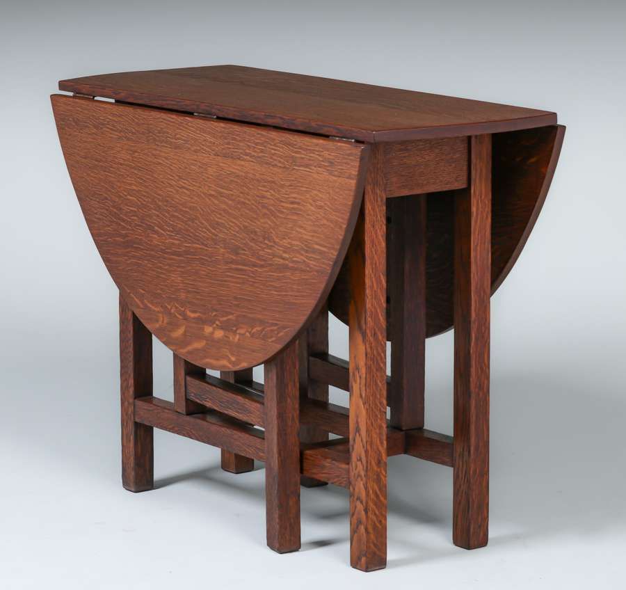 Limbert Drop Leaf Table c1910. Signed. Very nicely refinished. 38″ x 16.5″d x 29″h (38″ x 48″ open) SOLD