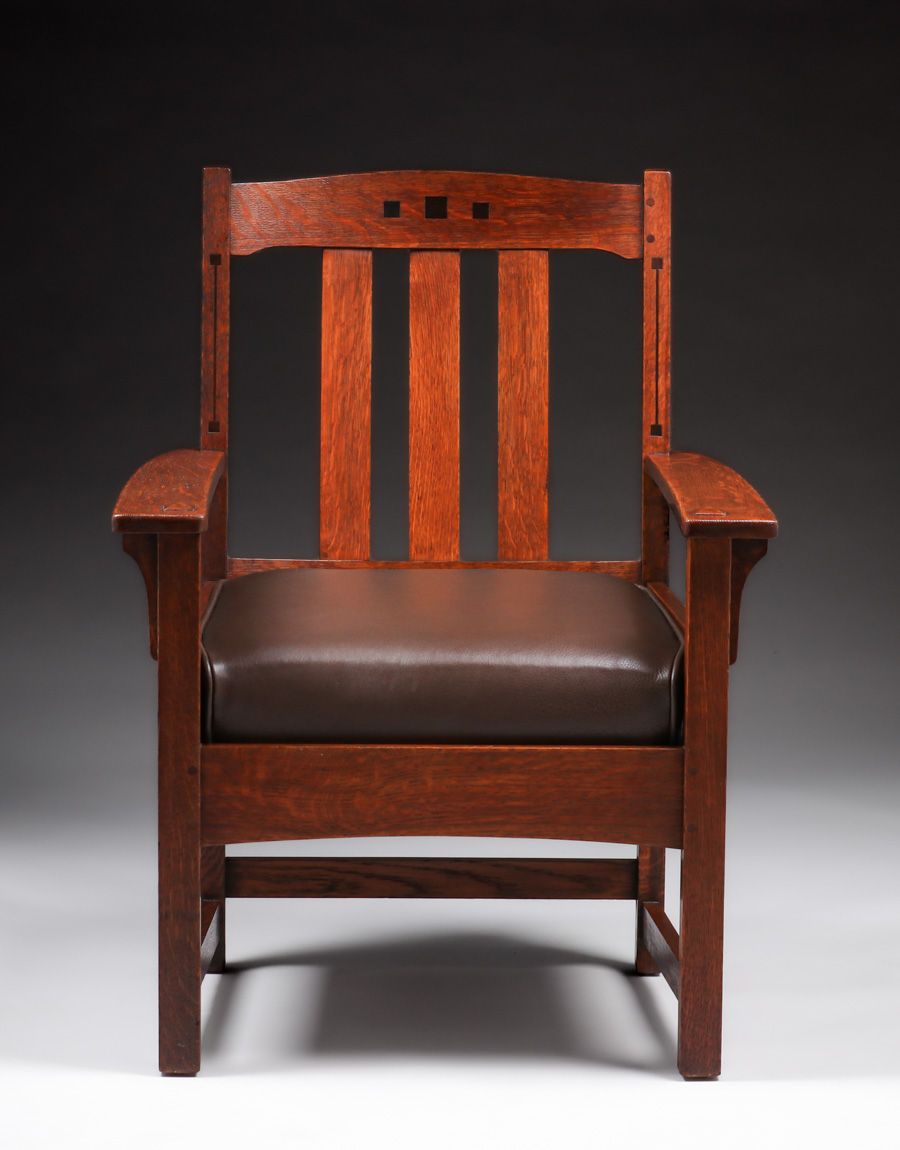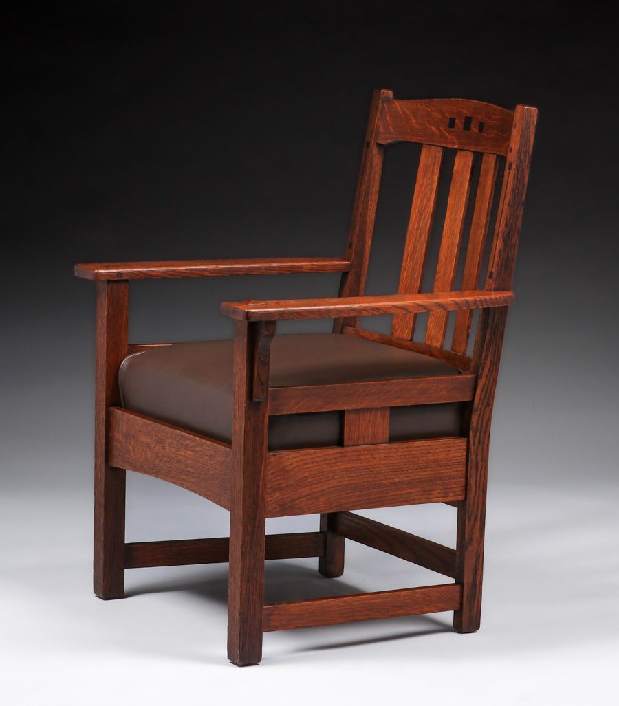 Limbert Ebon-Oak Armchair c1912-1915. Signed with branded mark. Excellent original finish. 36"h x 27.25"w x 22"d SOLD