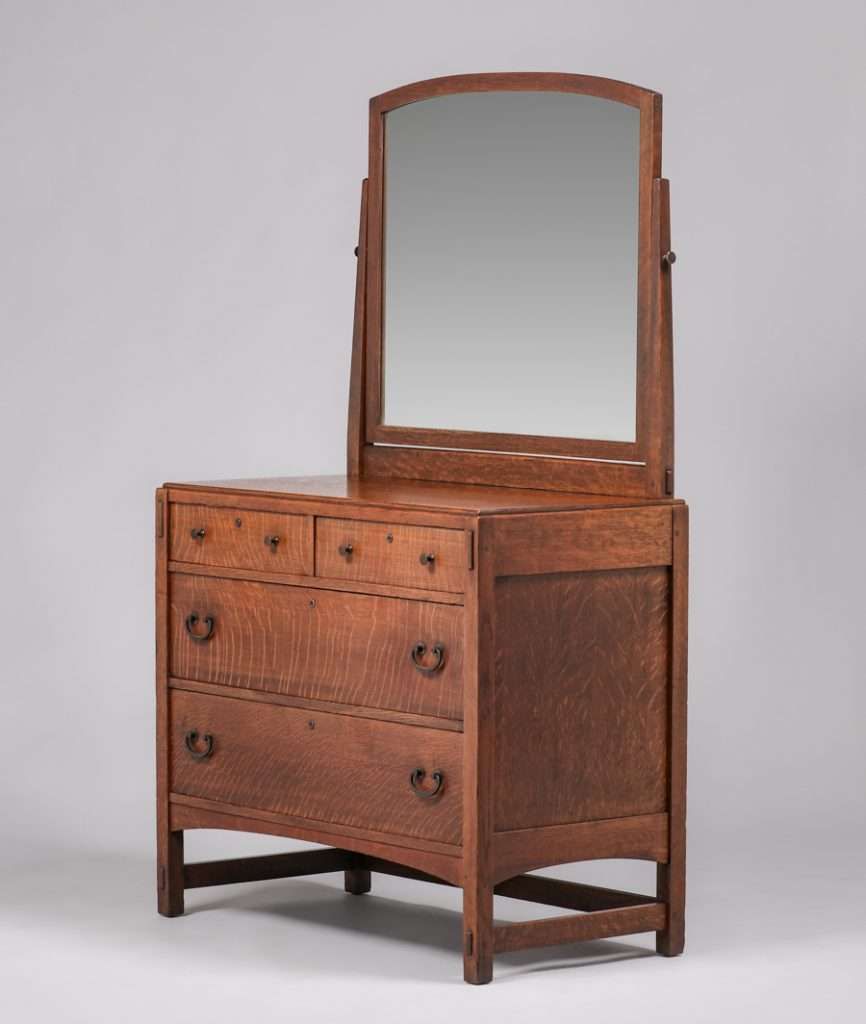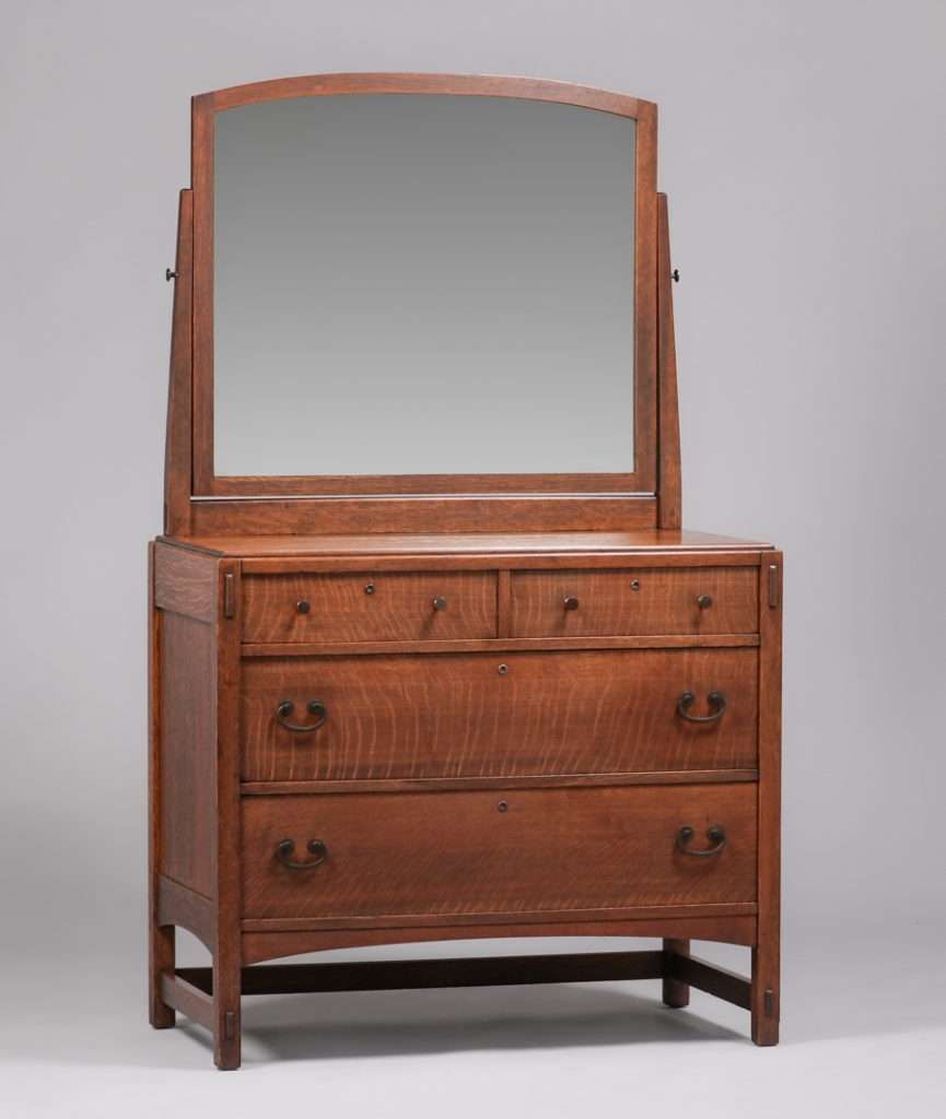 - Limbert Four-Drawer Mirrored Dresser c1910
