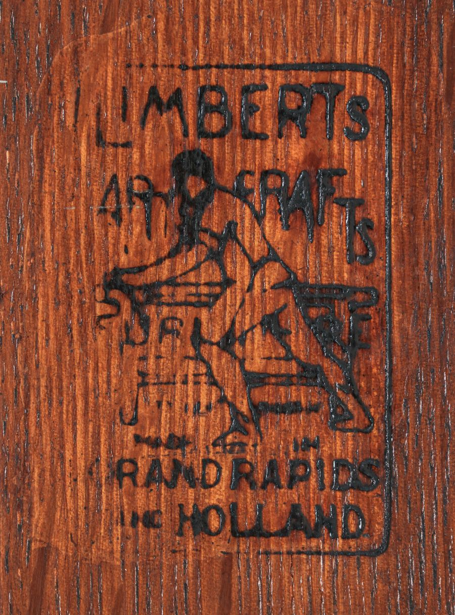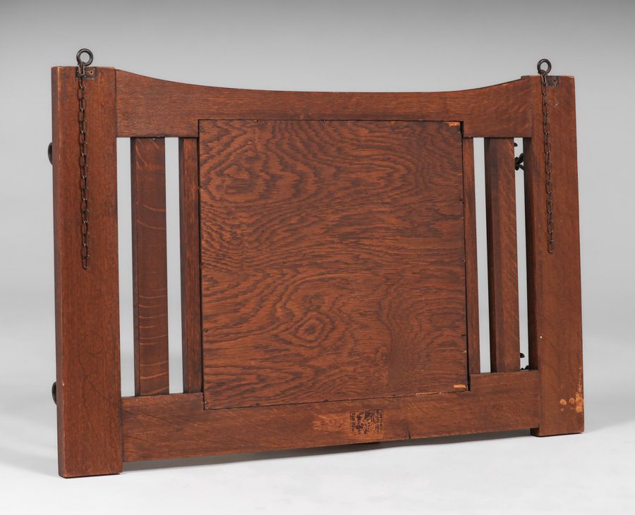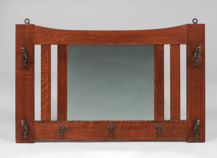 Limbert Oak Hanging Hall Mirror c1910. Signed with branded mark. Excellent original finish. 37.5"w x 23.5"h SOLD