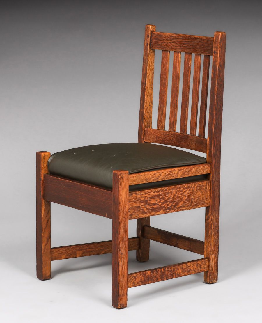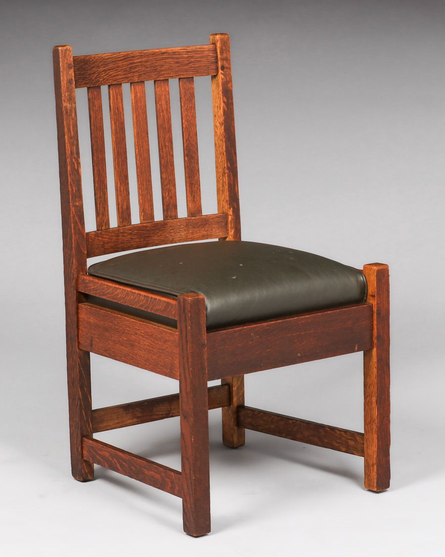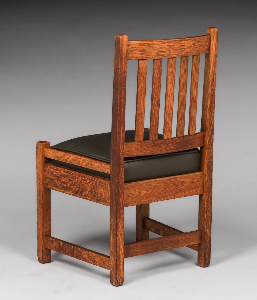 Limbert Oak Side Chair c1910. Signed. Excellent original finish. Rock solid sturdy. 34″h x 19.25″w x 18″d SOLD