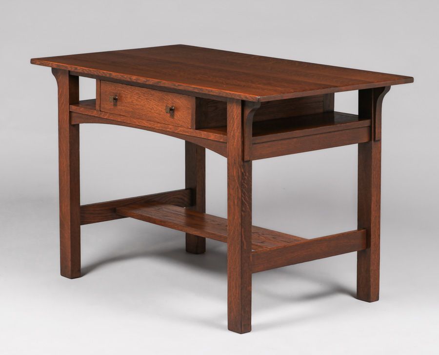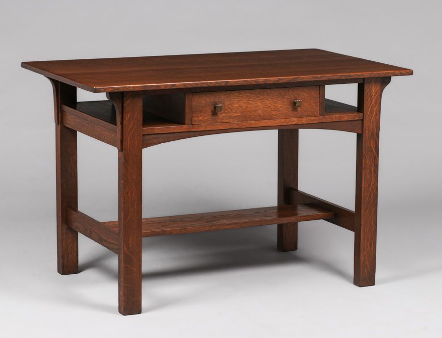 Limbert One-Drawer 45"w Library Table c1905. Unsigned. Very nicely refinished. 45″w x 26″d x 29″h SOLD