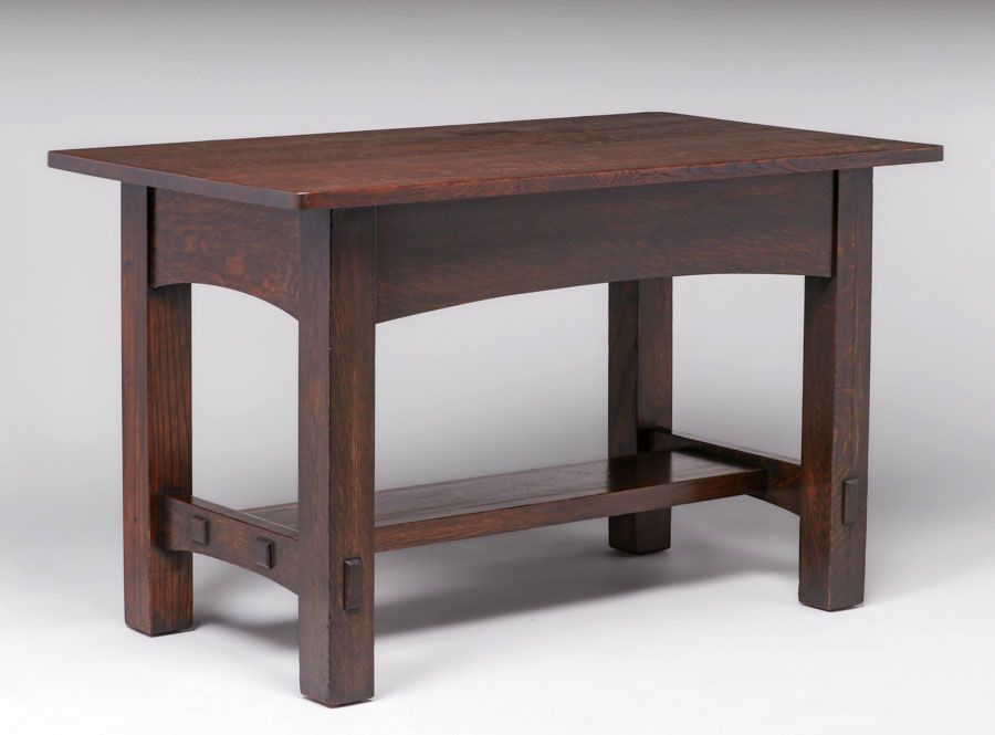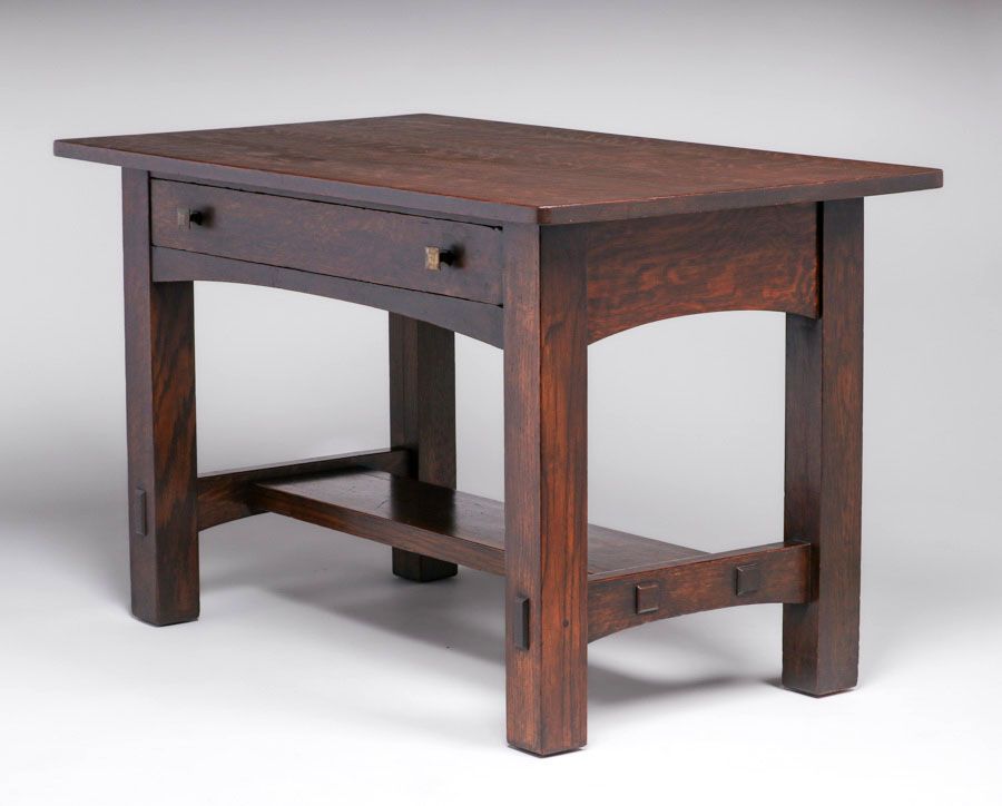 Limbert One-Drawer Library Table c1910. Signed. Top refinished perfectly to match original finish base. 48"w x 28"d x 29.5"h SOLD