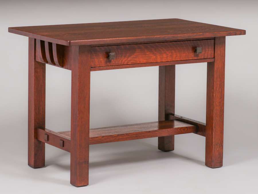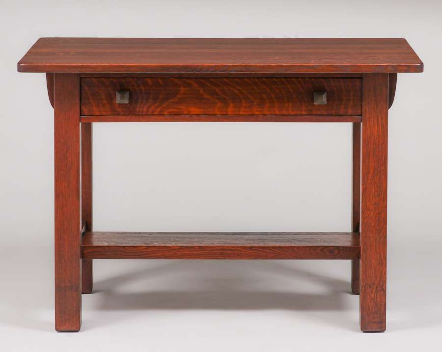 Limbert One-Drawer Library Table c1910. Signed. Top refinished perfectly to match original finish base. 42"w x 26"d x 29"h SOLD