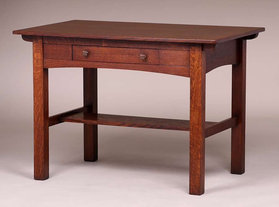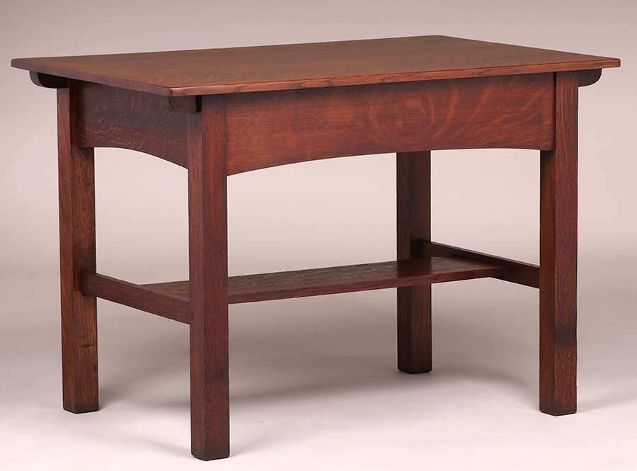 Limbert One-Drawer Library Table c1910. Signed with branded mark. Top refinished perfectly to match original finish base. 42"w x 26"d x 29"h SOLD