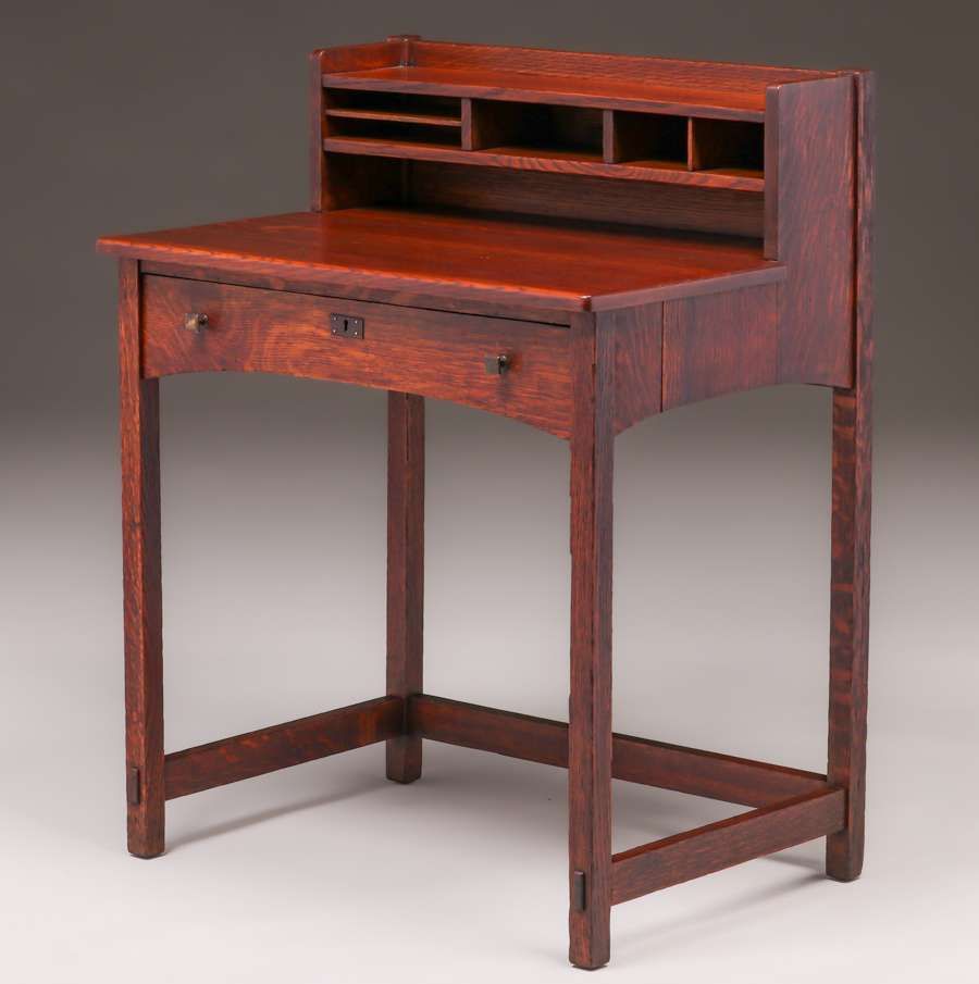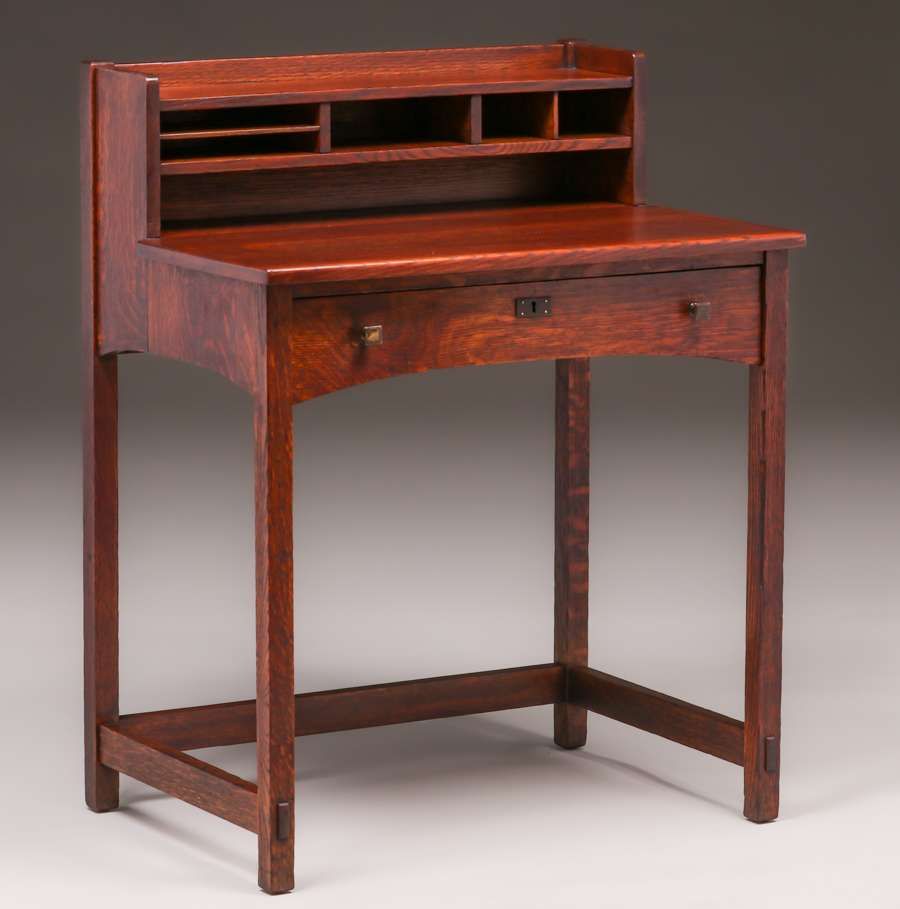 Limbert One-Drawer Postcard Desk c1910. Signed. Top refinished perfectly to match original finish. 30"w x 38"h (30"h to surface) x 20"d SOLD