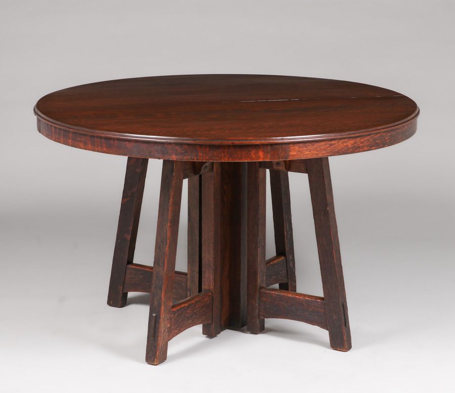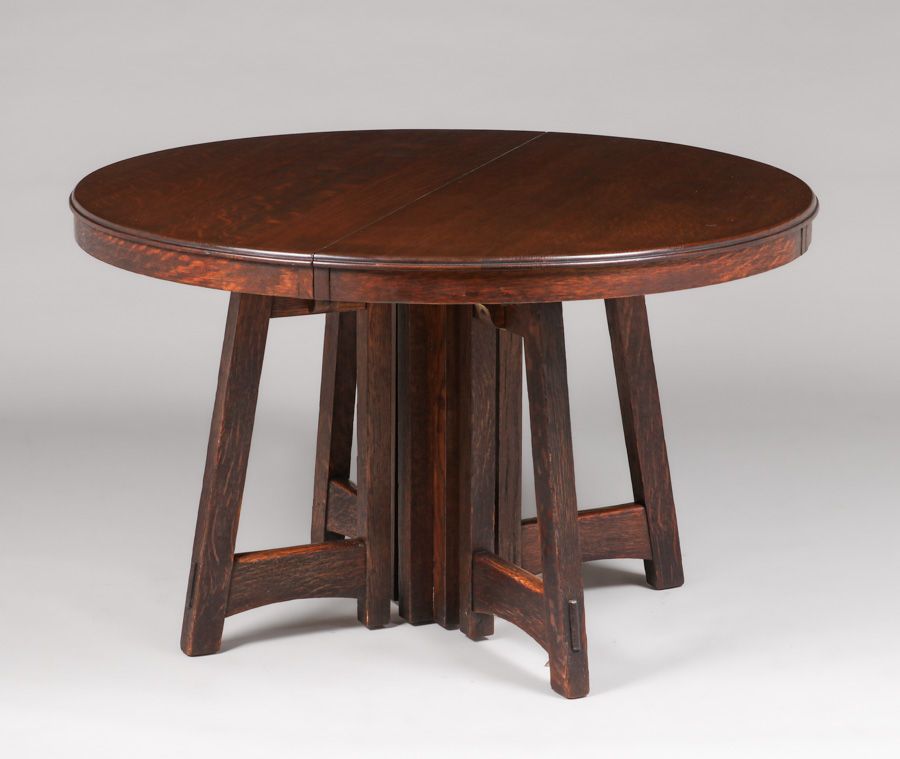 - Limbert Prairie School Flared-Leg Dining Table c1910