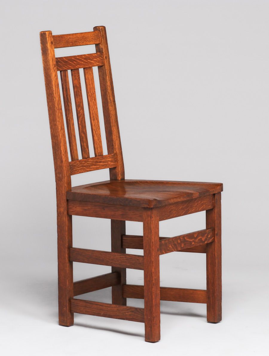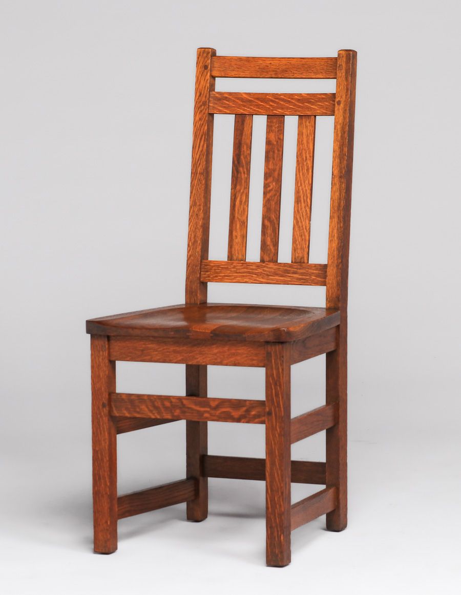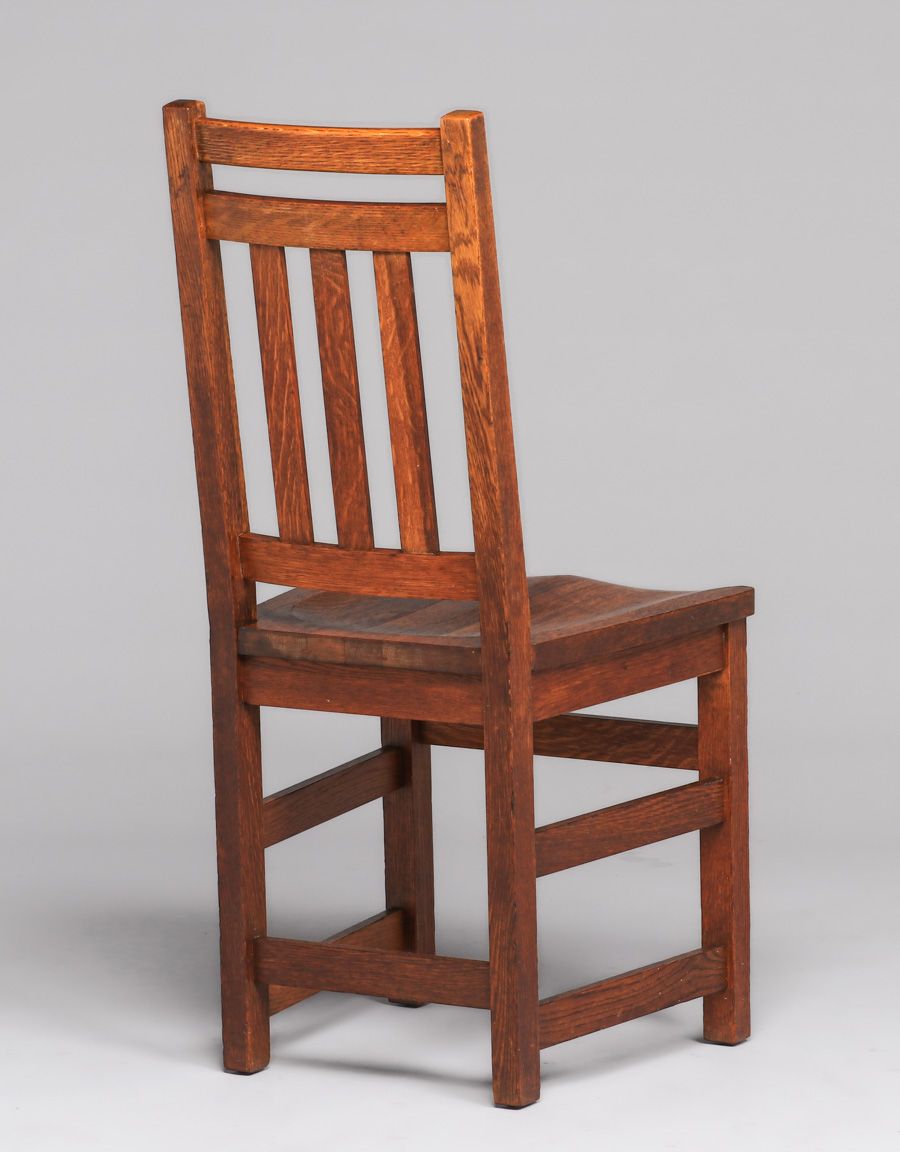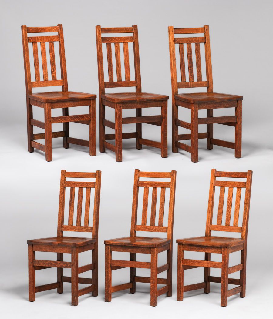 Limbert Set of 6 Dining Chairs c1910. Signed with branded mark. Excellent original finish. Rock solid sturdy. 38"h x 17.25"w x 16"d SOLD