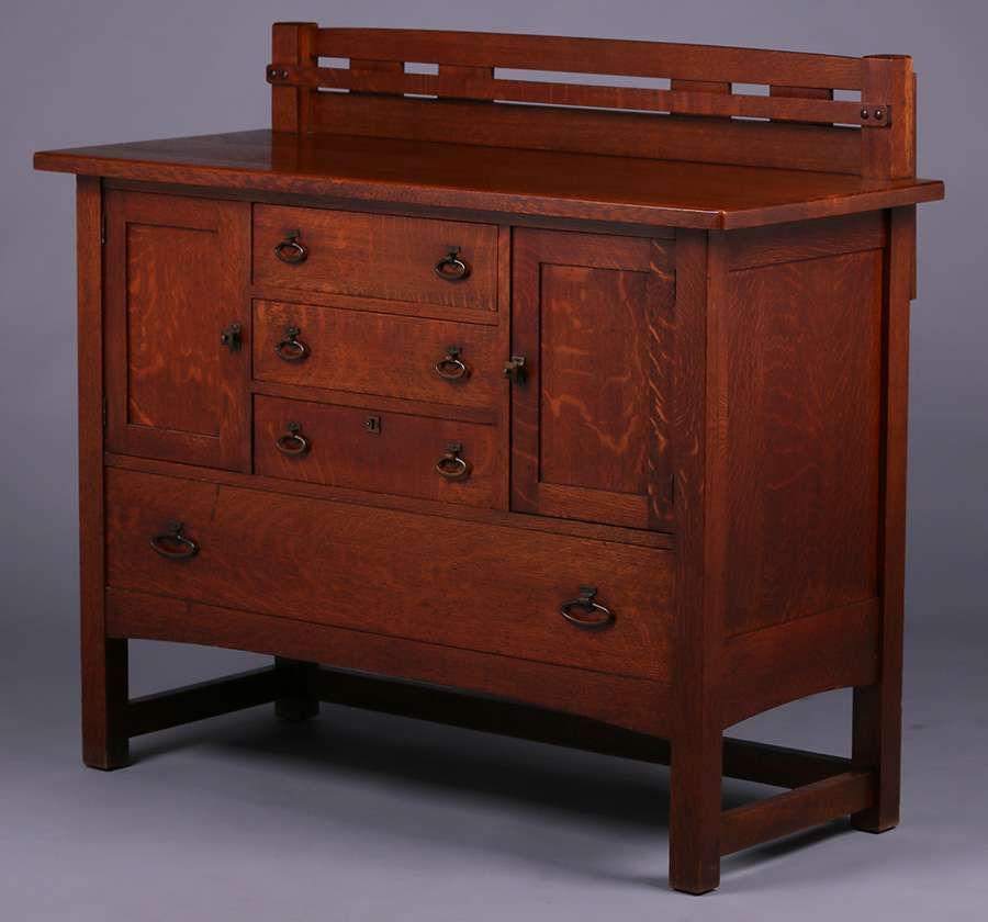 Limbert sideboard with two doors and four drawers. Signed with branded mark. Excellent original finish. 48"w x 42"h x 20"d SOLD