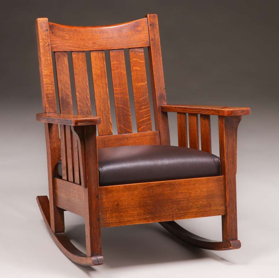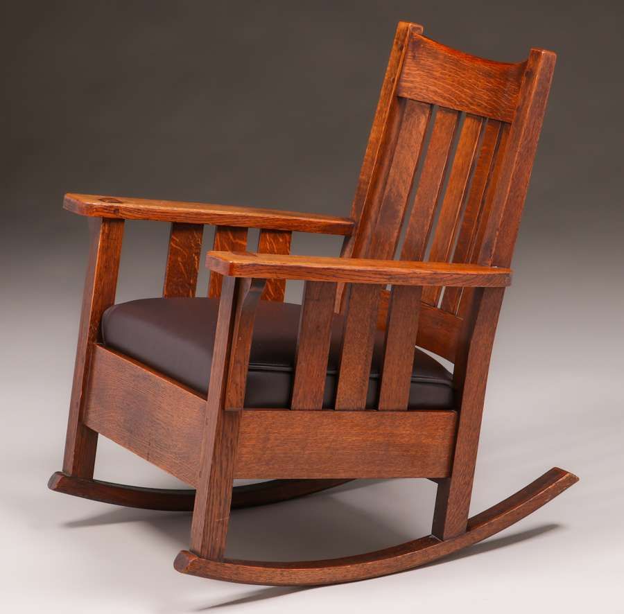 Limbert Slatted Rocker c1910. Signed. Excellent original finish. Rock solid sturdy. 35"h x 27.5"w x 31"d SOLD