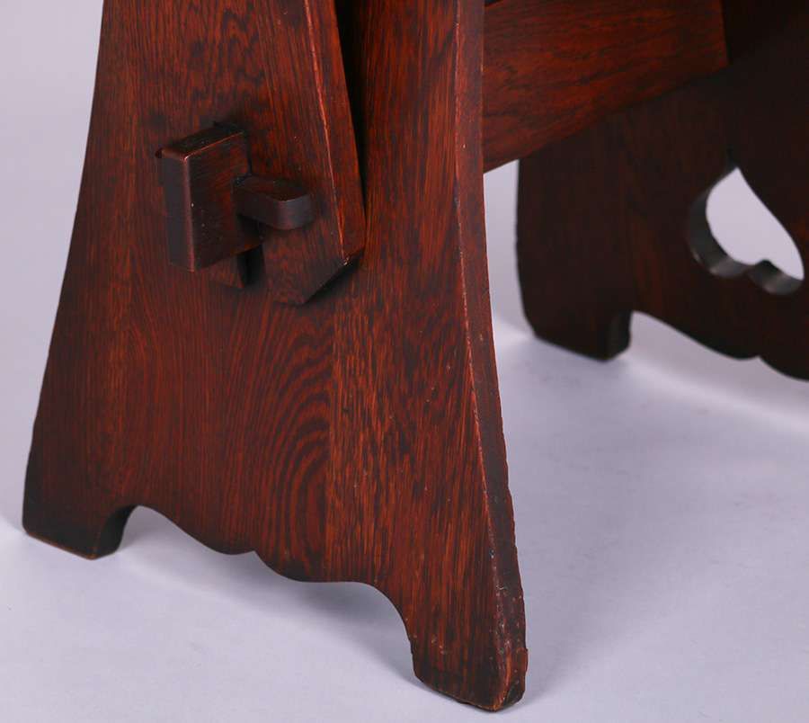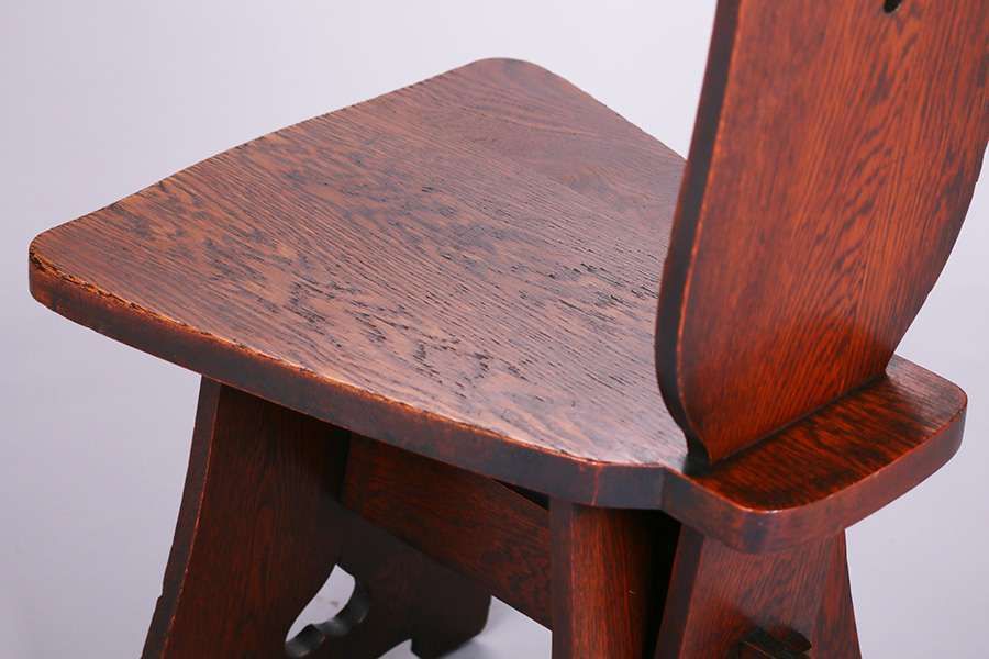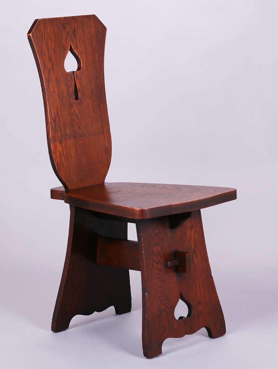 Limbert Spade Cutout Hall Chair. Signed. Excellent original finish. 38.75″h x 17.75″w x 21.5″d SOLD