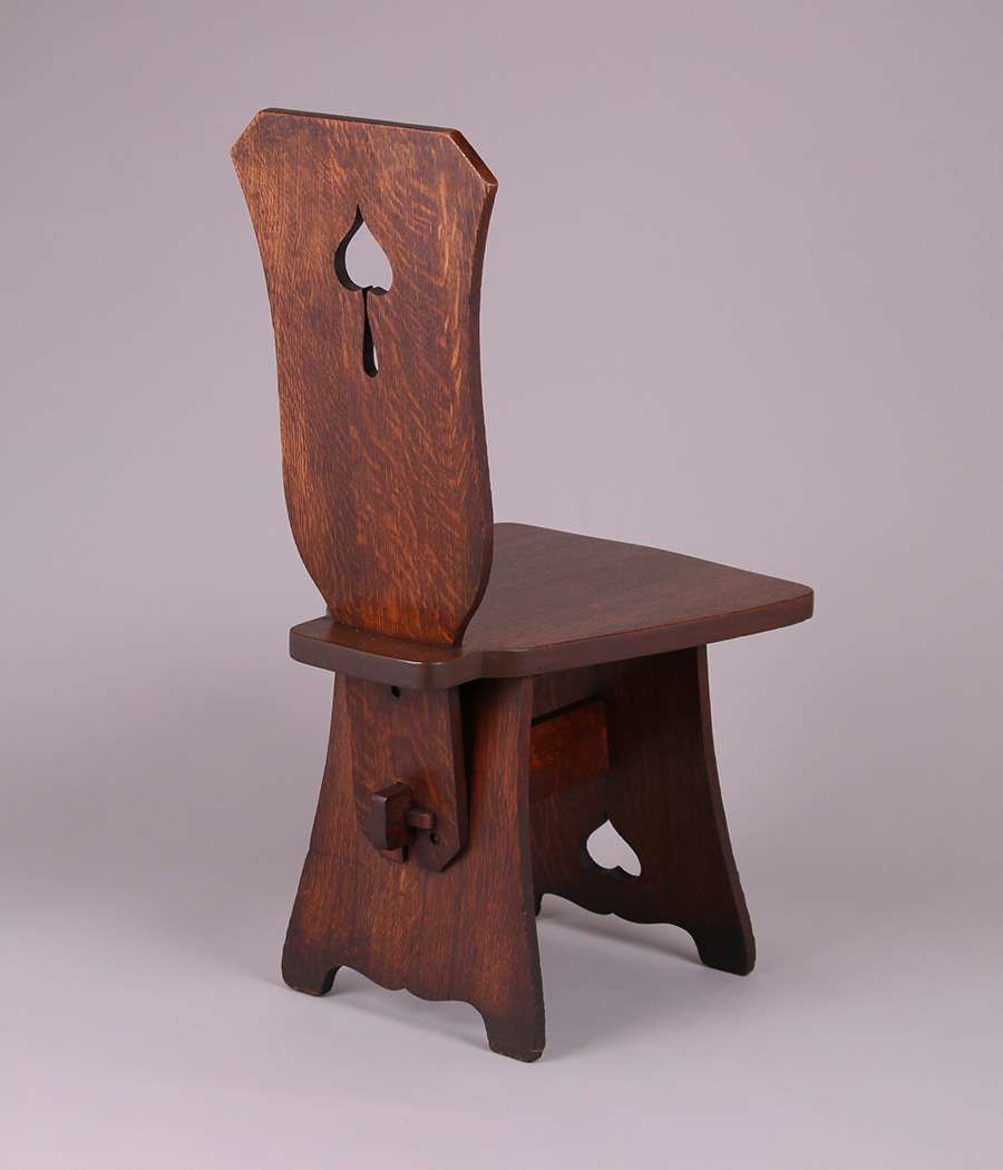 Limbert spade cutout hall chair. Signed. Excellent original finish. Seat surface refinished. 38.5"h x 17.5"w x 22"d SOLD