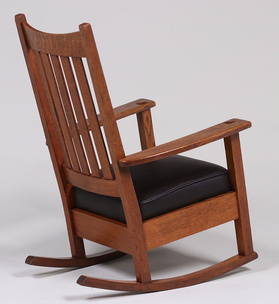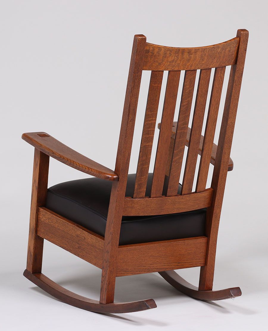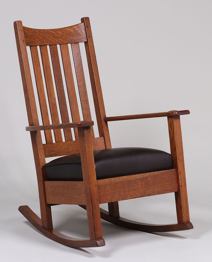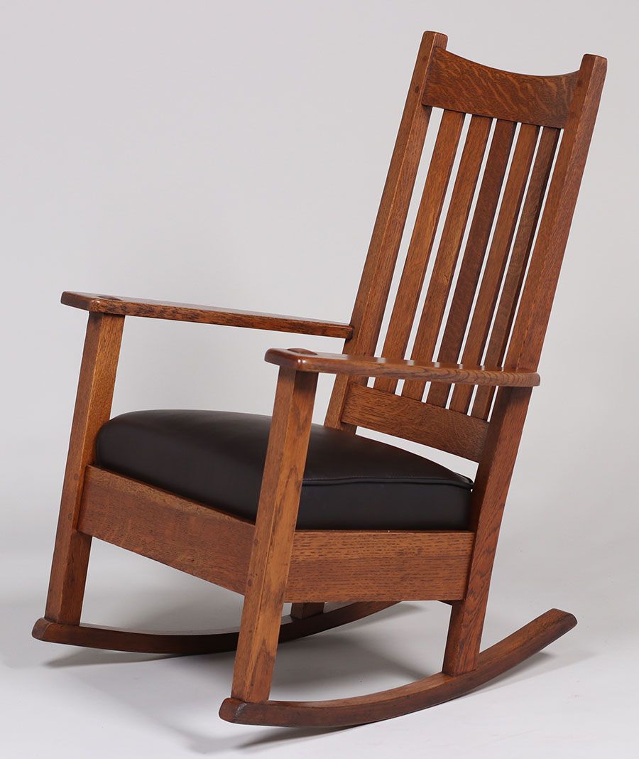 Limbert tallback rocker. Signed. Refinished. 39"h x 24.75"w x 28.5"d SOLD