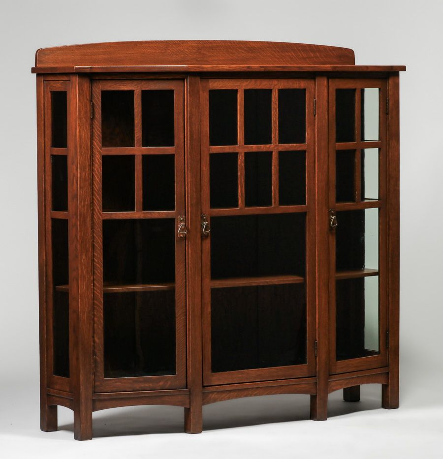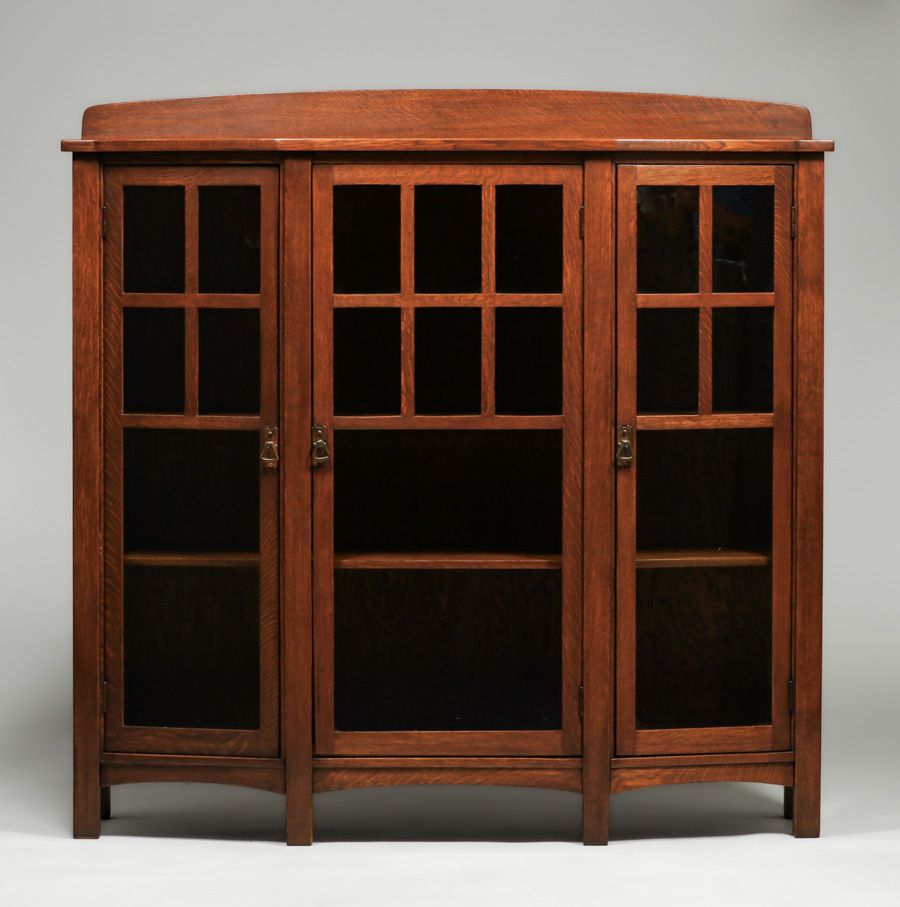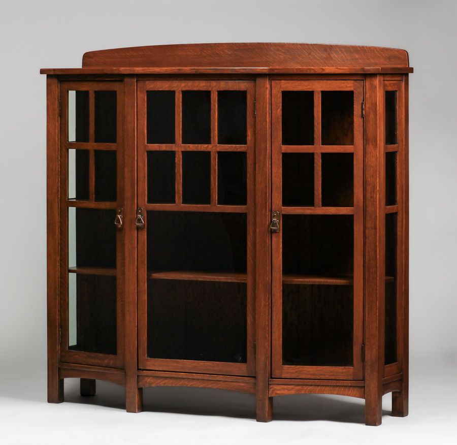 Limbert Three-Door China Cabinet c1910. Signed with branded mark. Very nicely refinished. 64.5″w x 63 3/8″h x 18″d SOLD