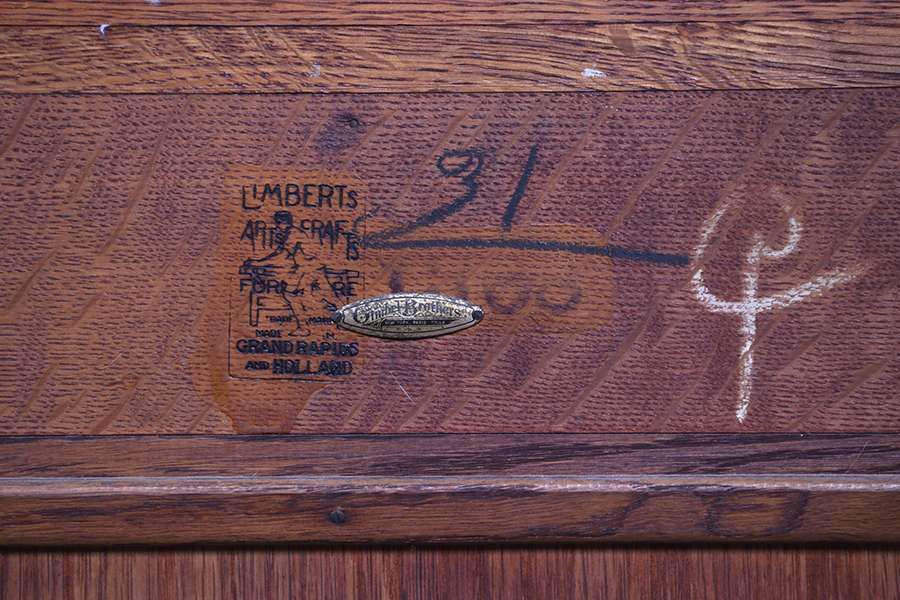 Limbert two-door china cabinet c1910. Signed. Excellent original finish. 60"h x 42"w x 17"d SOLD