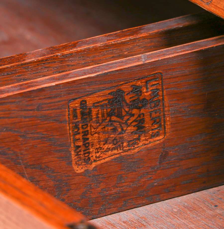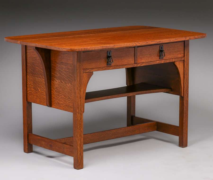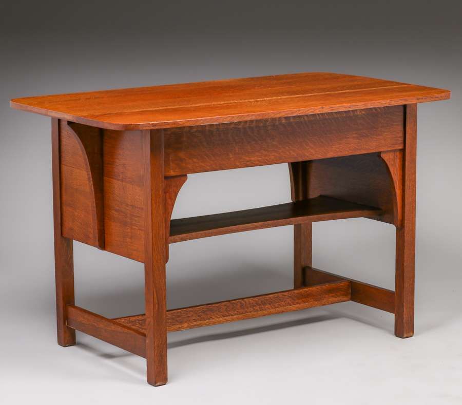 Limbert Two-Drawer Library Table c1910. Signed with branded mark. Very nicely refinished. 46"w x 28"d x 29.5"h SOLD