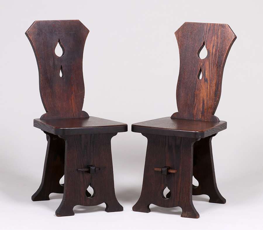- Pair Early Limbert Cutout Hall Chairs c1902