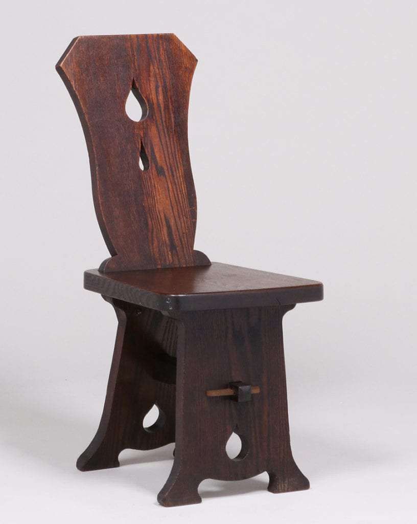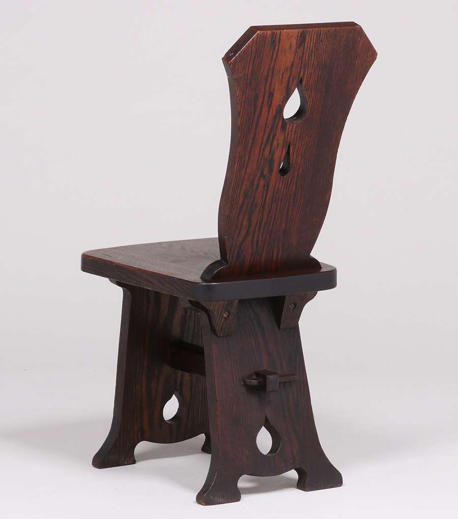 Pair Early Limbert Cutout Hall Chairs c1902. Unsigned. Excellent original finish. These are thicker and heavier than the later similar model #80. 38"h x 16"w x 18"d SOLD