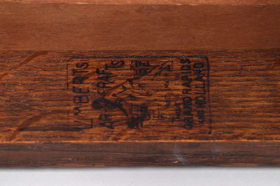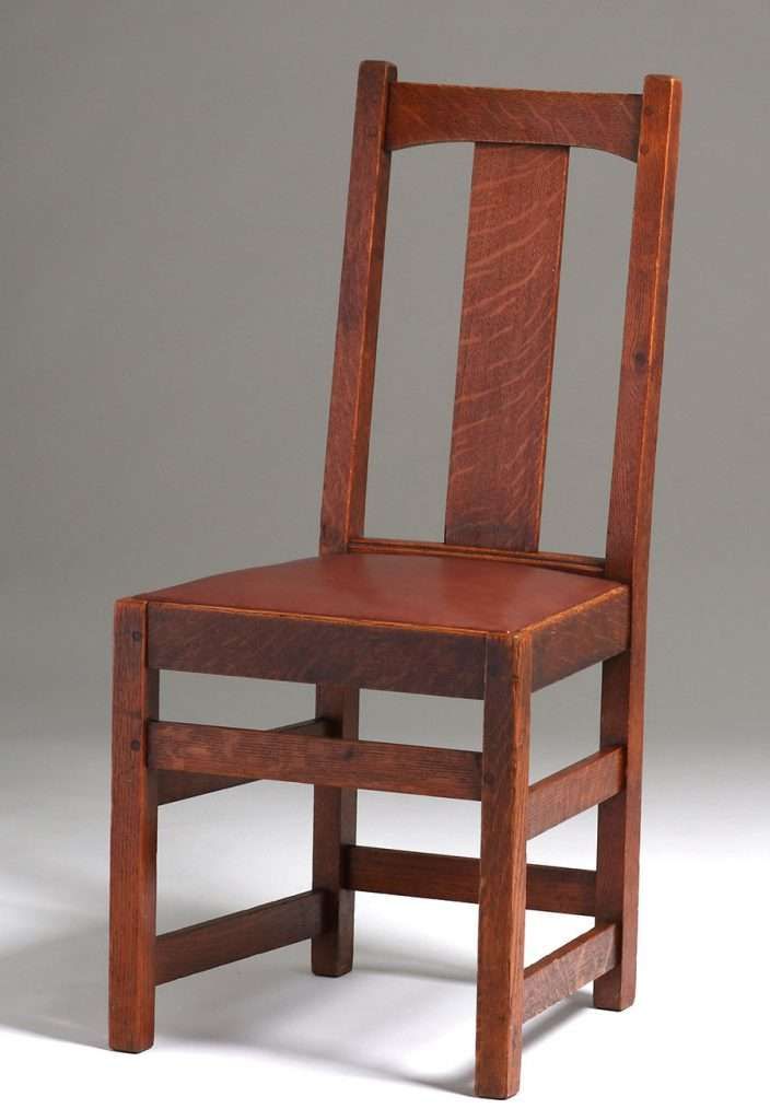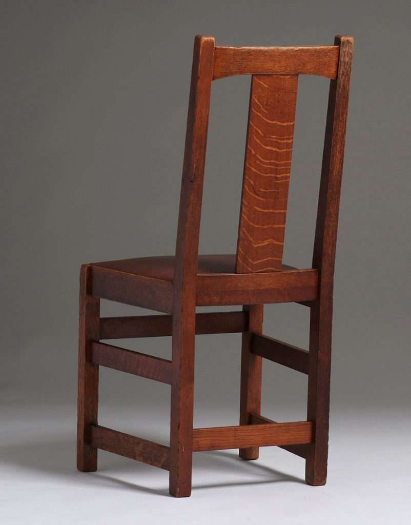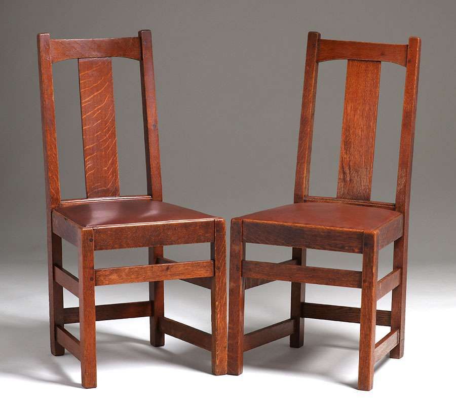 Pair Limbert T-Back Side Chairs c1910. Signed with branded mark. Original finish. Very sturdy. 36"h x 16"w x 16"d SOLD