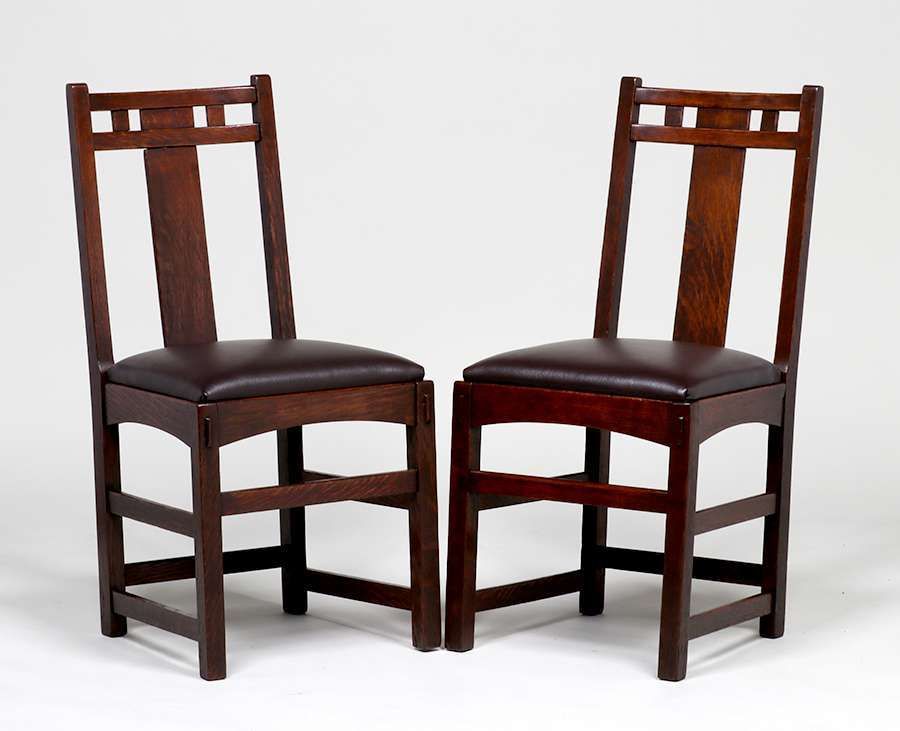 Pair of Limbert Side Chairs c1912. Signed. Very nicely refinished. Rock solid sturdy. 36.75"h x 17.5"w x 17"d SOLD