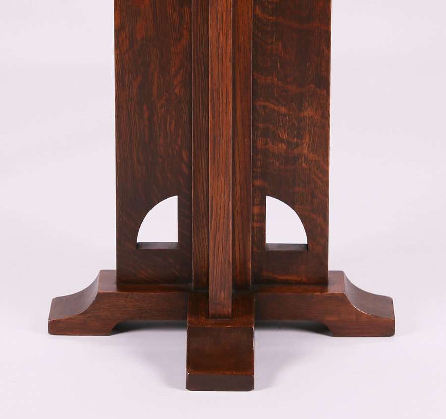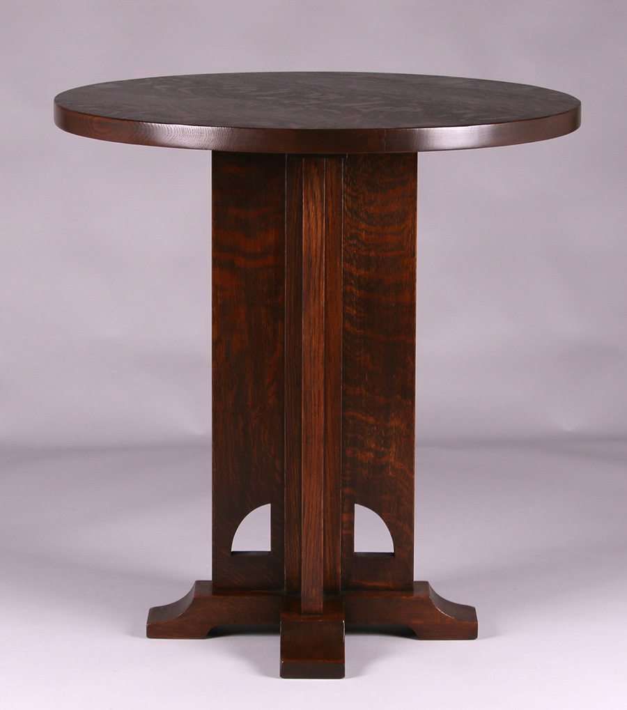 Extremely rare Limbert cutout cafe table #318. Unsigned except marked "318" underneath top. Also signed with retailers paper label "Bailey's Tables". Refinished. 29.5"h x 28"d SOLD