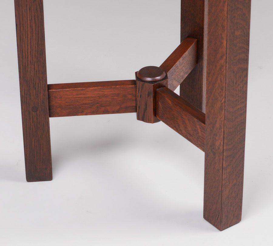 Rare Limbert Guitar-Pick Shaped Side Table c1910. Signed with branded mark. Three perfectly replaced legs. Very nicely refinished. 29"h x 21" x 21" SOLD