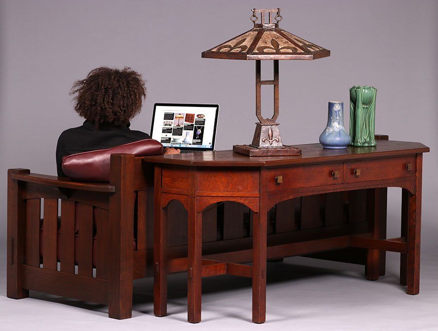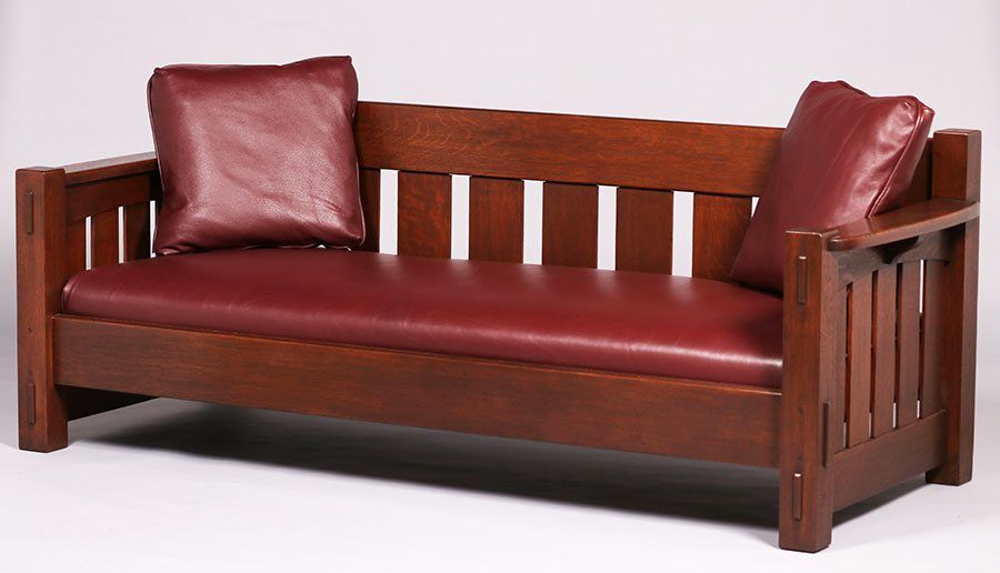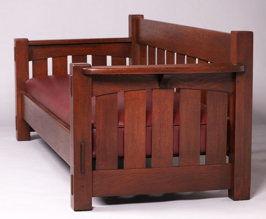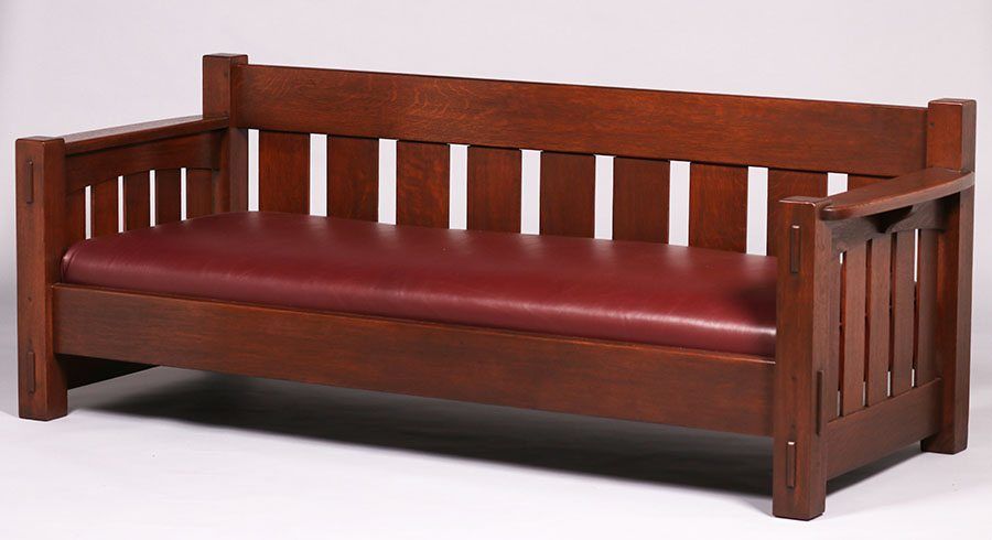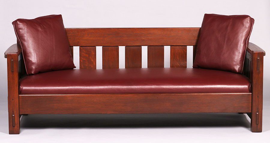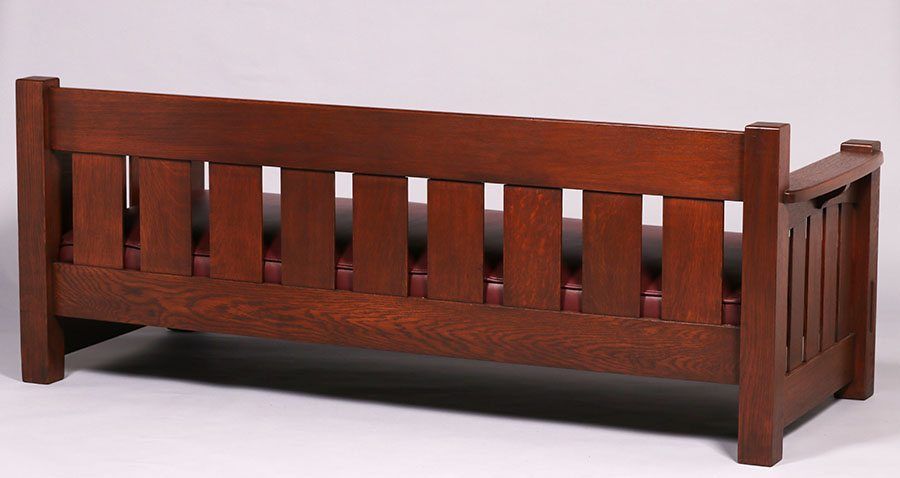 Rare Limbert settee #570 with five slats under each arm. Signed with branded mark. Very nicely refinished. 80"w x 31.75"d x 29.5"h SOLD