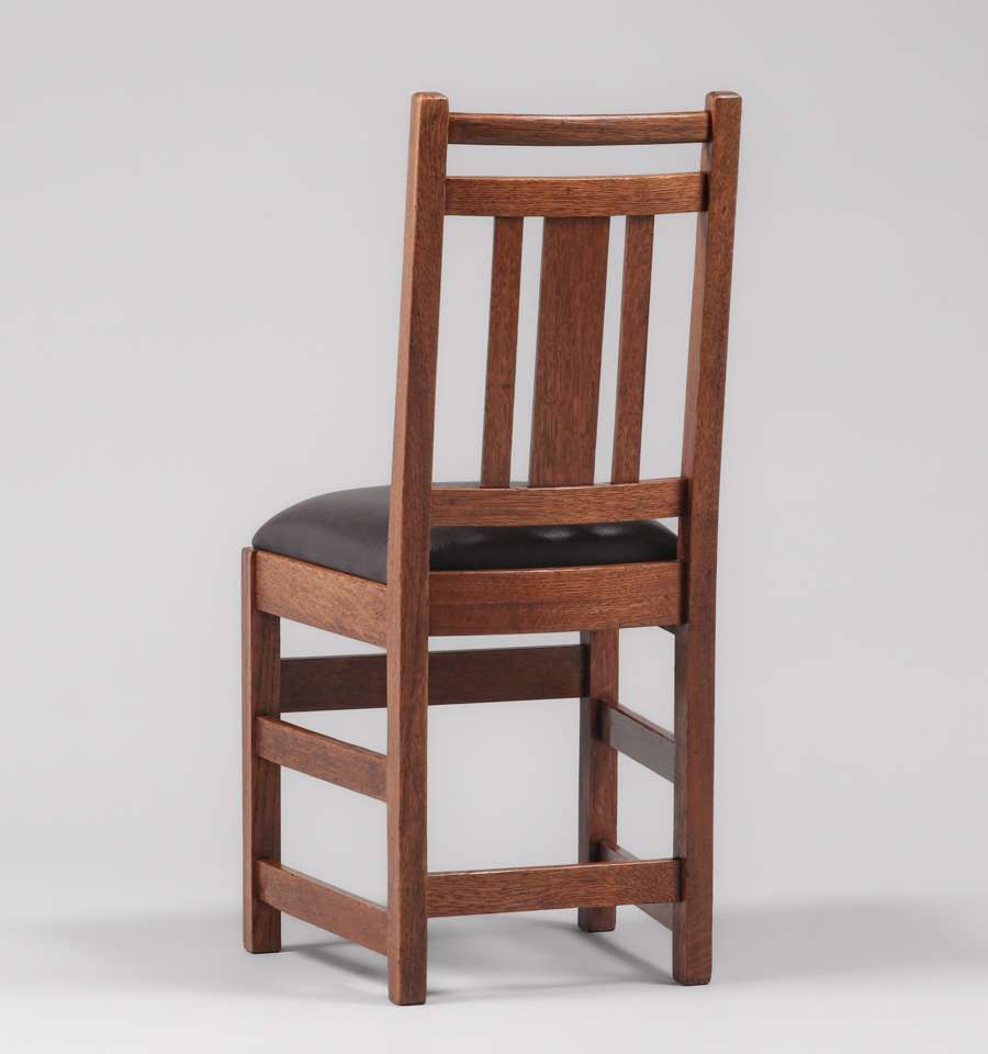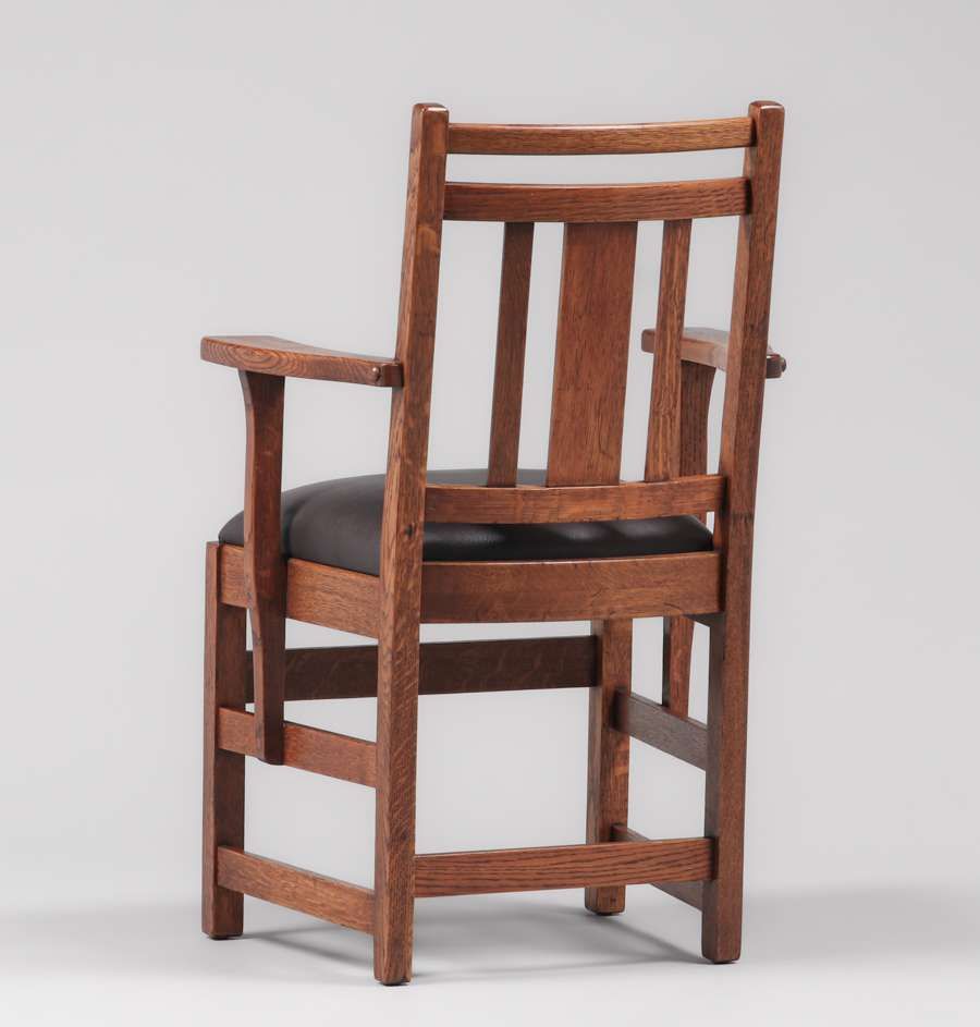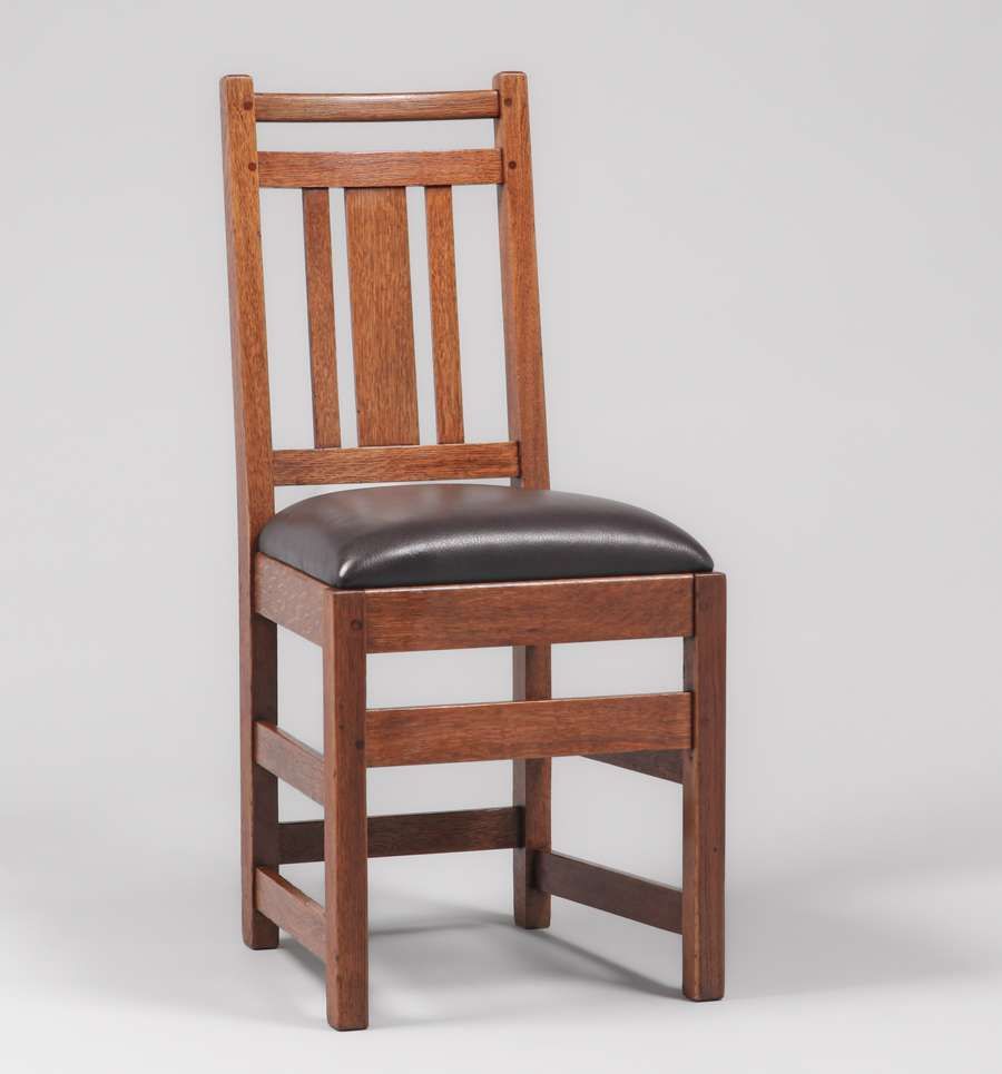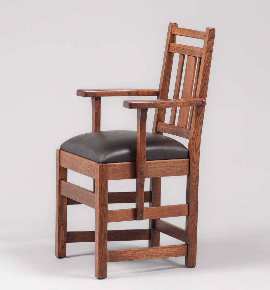 Set of 6 Limbert Dining Chairs c1910. Signed. Excellent original finish. Rock solid sturdy. Armchair 36.25"h x 23.5"w x 19"d. Side chairs 36.25"h x 16.5"w x 16" SOLD