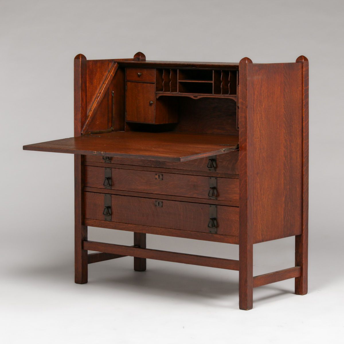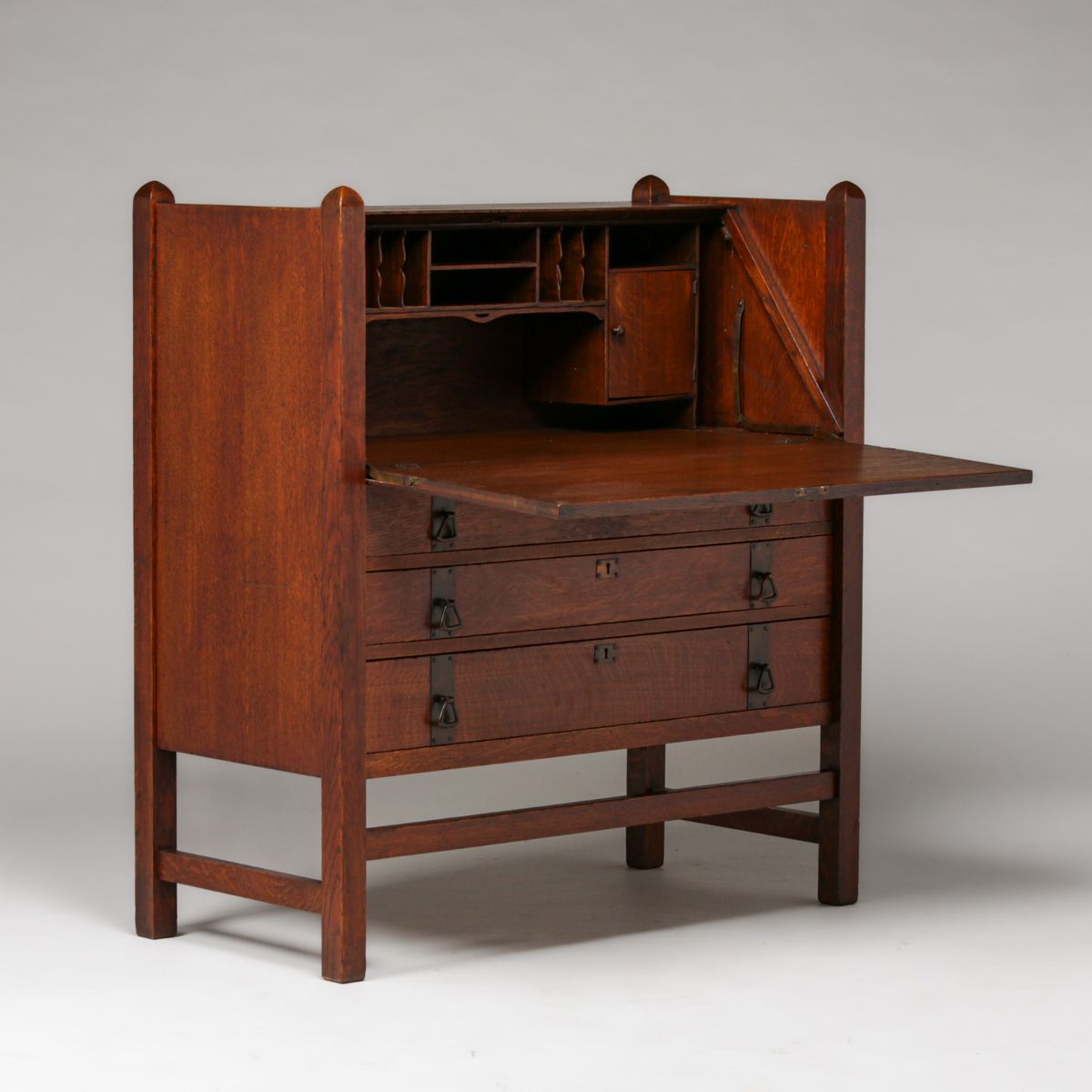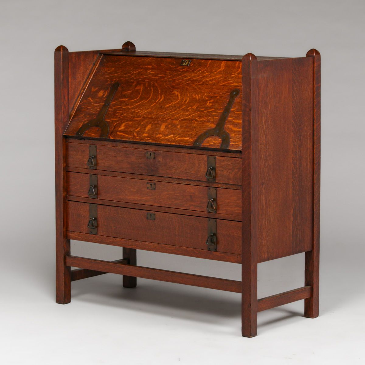 - Limbert Strap-Hinge Three-Drawer Dropfront Desk c1910