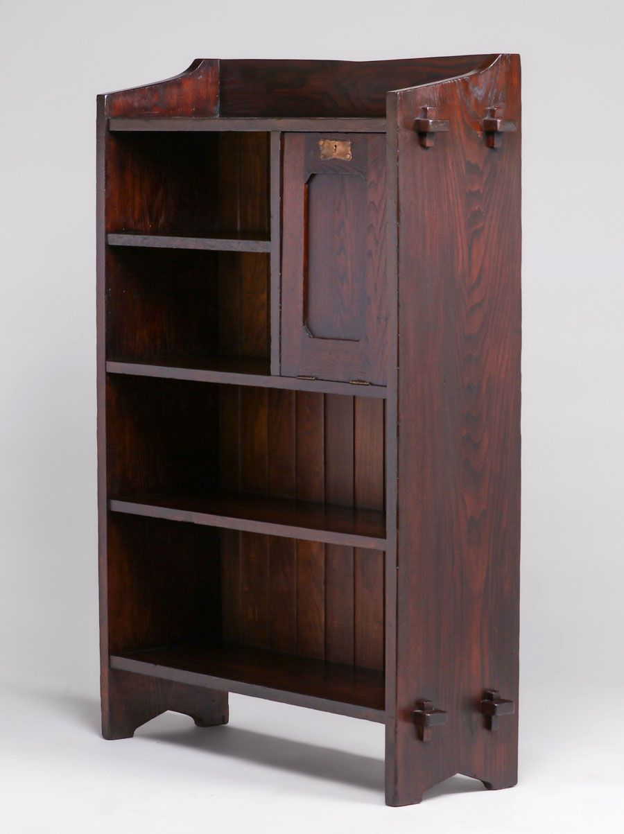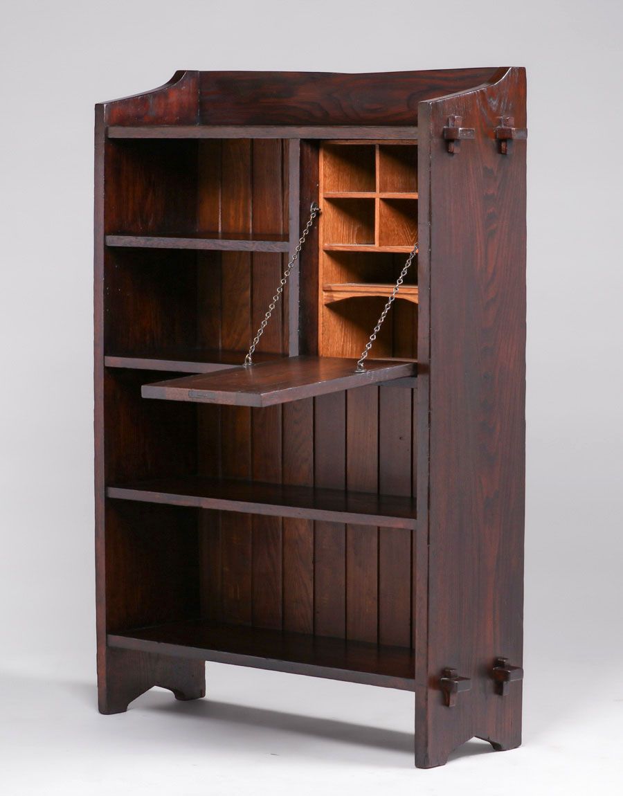 Early L&JG Stickley Onondaga Chestnut Dropfront Desk - Open Bookcase Cabinet c1902-1904. Unsigned. Color added to original finish. 54”h x 36”w + tenons x 12”d SOLD