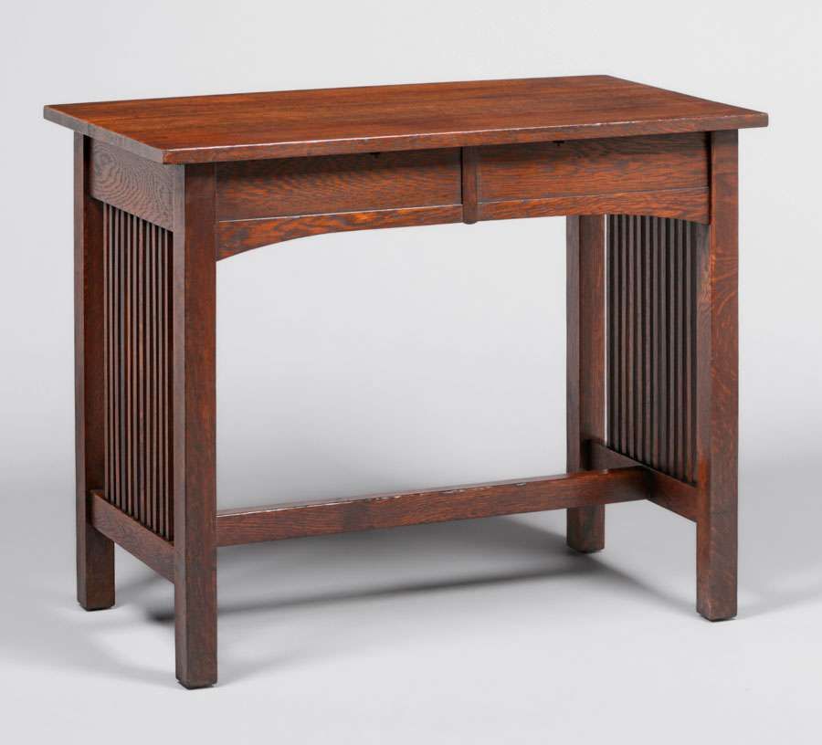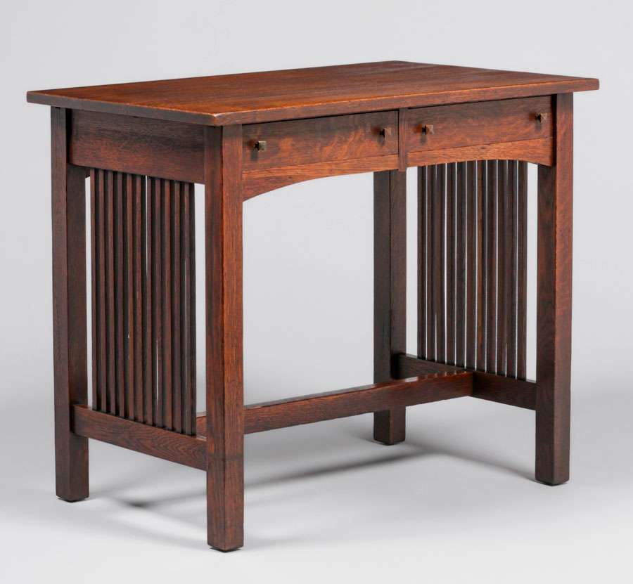 Early L&JG Stickley Onondaga Two-Drawer Spindled Table c1902-1904. This small desk works perfectly as a sofa table. Unsigned. Excellent original finish. 36"w x 20"d x 29.5"h SOLD
