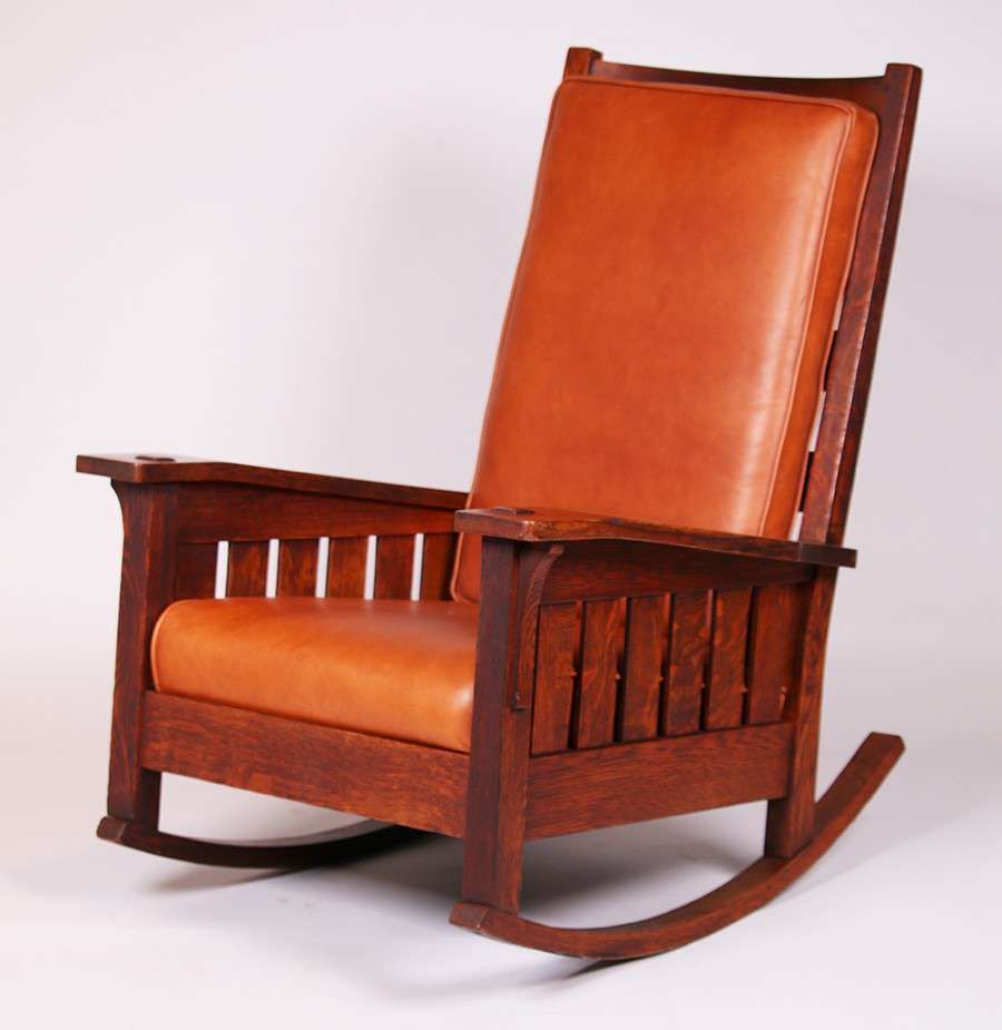 Extremely rare L&JG Stickley Bentarm Rocker. Excellent original finish. Signed. 42.5"h x 30.5"w x 37"d SOLD