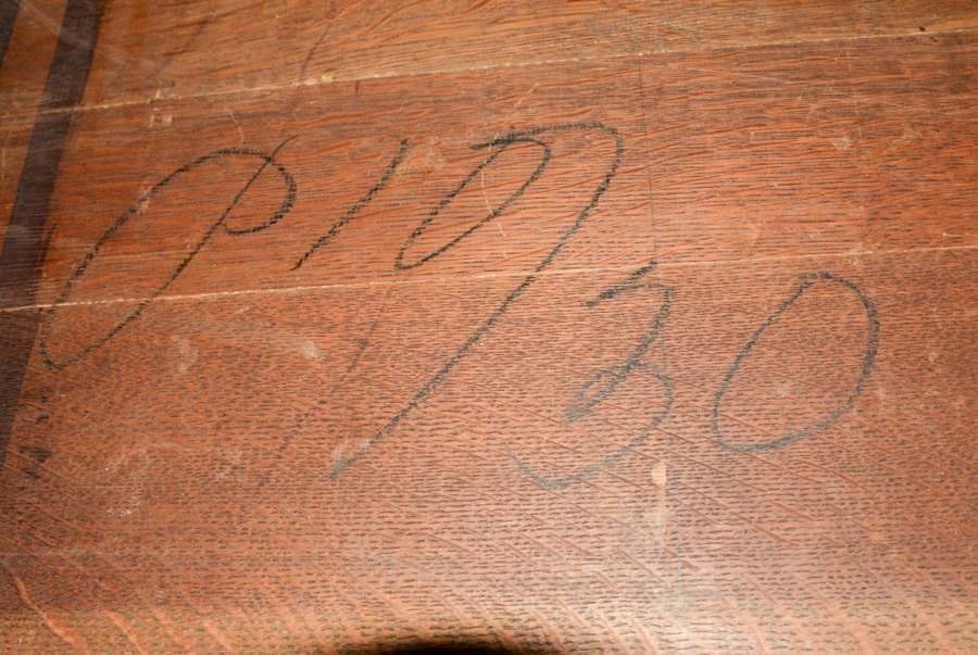 Large L&JG Stickley 60"w Trestle Table c1910. Unsigned. Top refinished perfectly to match original finish base. Very sturdy. 60"w x 35.5" x 29"h SOLD