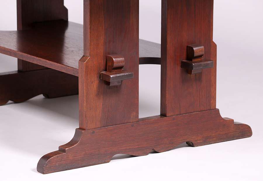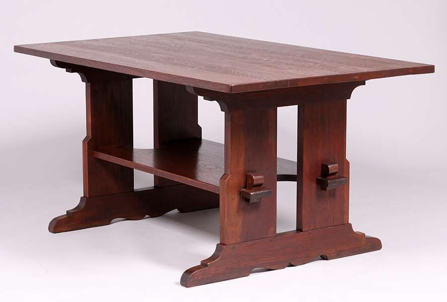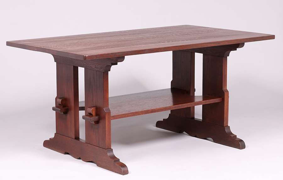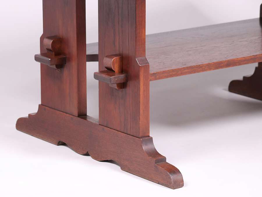 - Large L&JG Stickley Trestle Table c1910