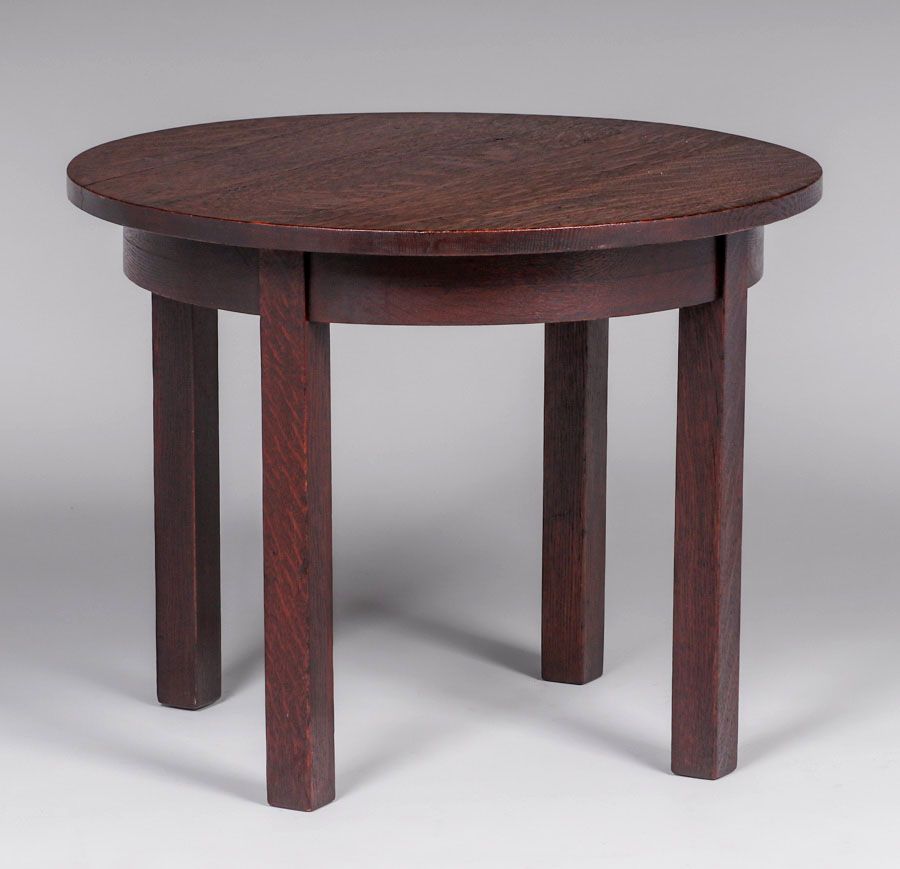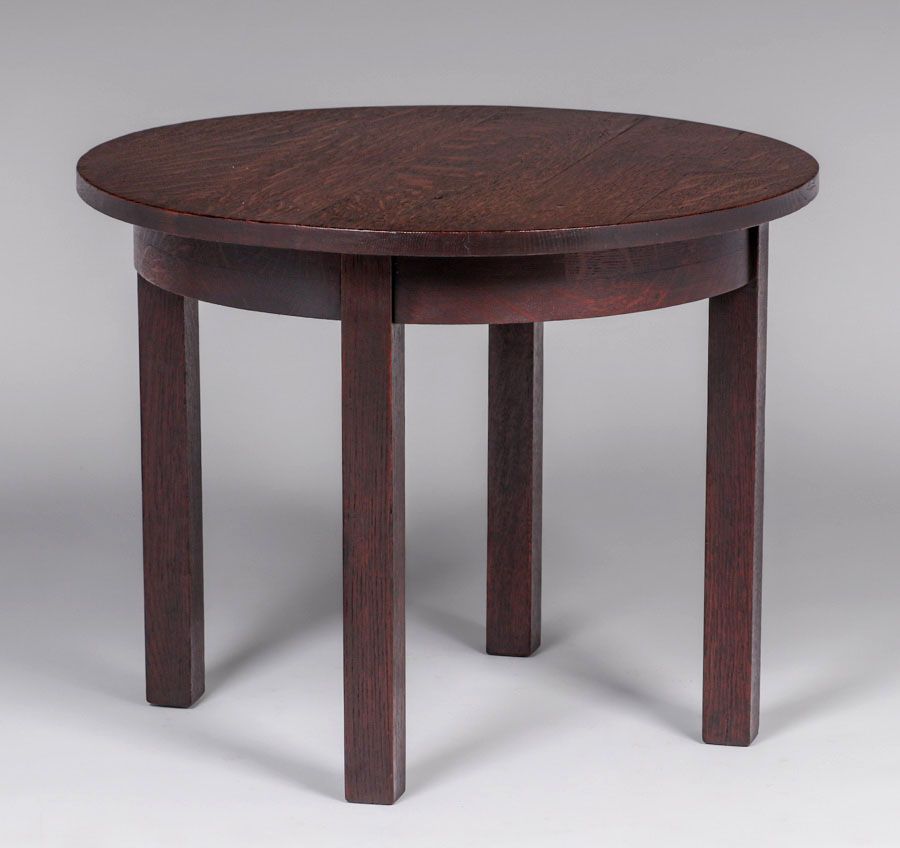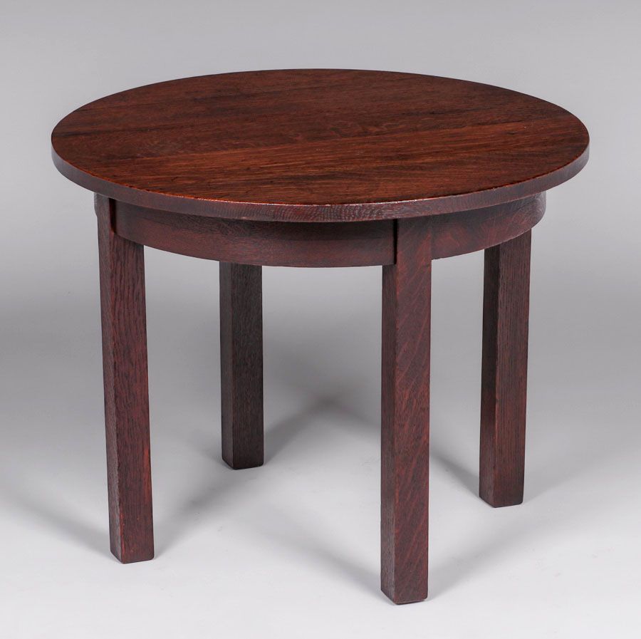 L&JG Stickley 24"d Lamp Table c1905. Originally a taller version that someone cutdown. Unsigned. Excellent original finish. 24"d x 19"h SOLD