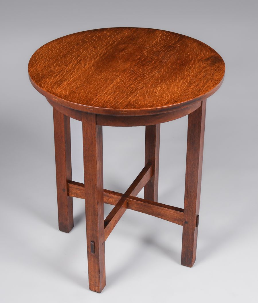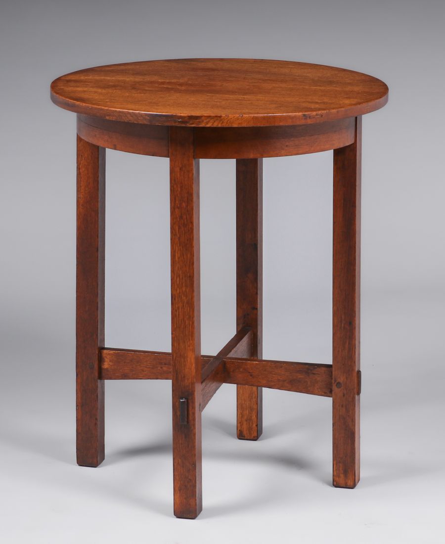L&JG Stickley 24"d Lamp Table c1905-1907. Signed with L&JG Stickley Handcraft mark. Excellent original finish. 29"h x 24"d SOLD